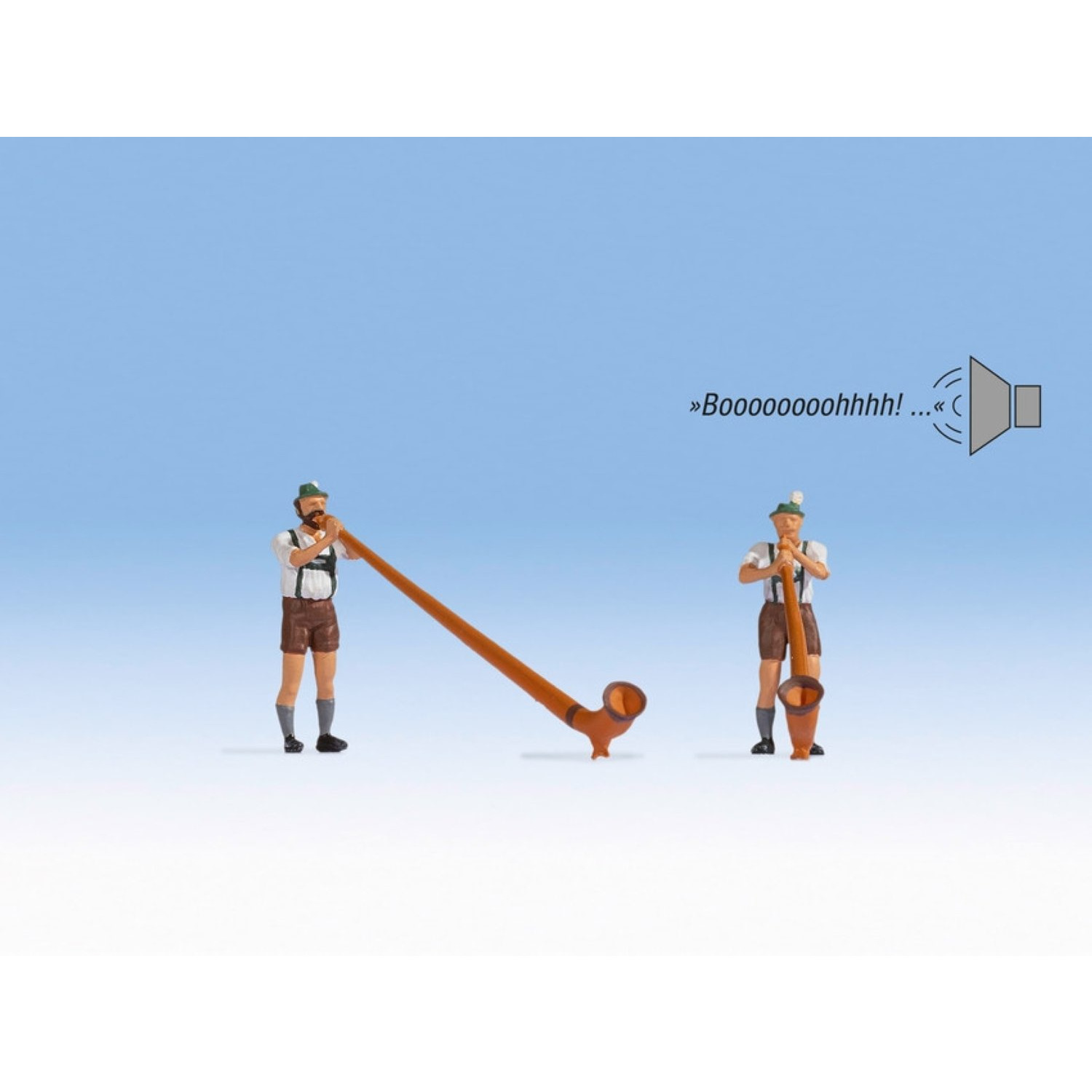 Der Sound hoch oben auf dem Berg. Die NOCH Sound-Szene »Alphornbläser« findet sich perfekt auf einer ausgestalteten Berglandschaft wieder! Die Bergsteiger, die den steilen Berg erklommen haben, freuen sich auf eine erholsame Pause hoch oben auf dem Berg, mit Essen, Trinken und guter Musik. Die »Alphornbläser« sorgen für gute Stimmung hoch oben auf dem Berg und werden von der Musikkapelle musikalisch begleitet. Hier ist gute Stimmung garantiert und der Sound des Alphorns schallt durch den dichten Mischwald hoch oben auf dem Gipfel. Das darf auf keiner realistisch wirkenden Landschaft fehlen und sorgt mit dem wirklichkeitsnahen Sound für eine tolle Atmosphäre.