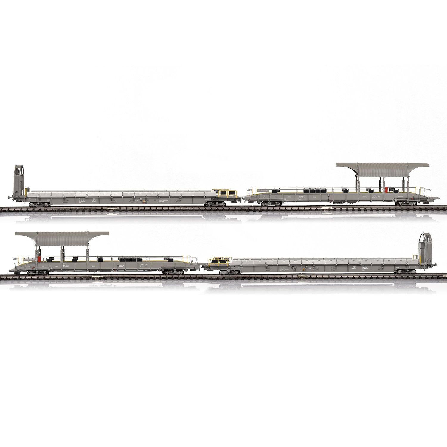 Dieses Wagen-Set besteht aus den oben genannten 2 Auffahrwagen und 2 Rampenwagen. Minimum Radius 420mm.