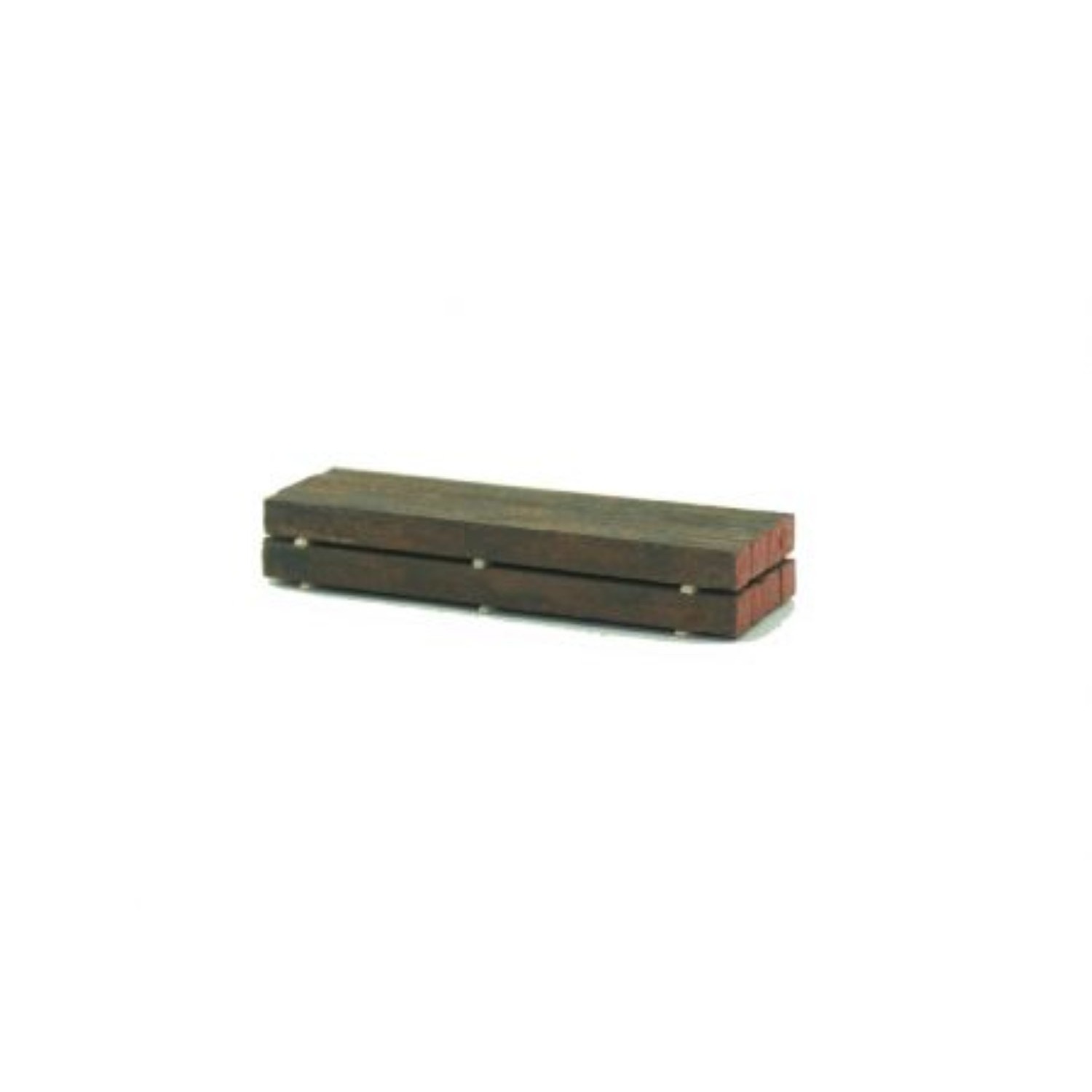 2 x 4 massive, angerostete Gussstahlstangen auf 2 x 3 Unterlegbalken. Abmessungen: L x B x H ca. : 69 x 22 x 10 mm