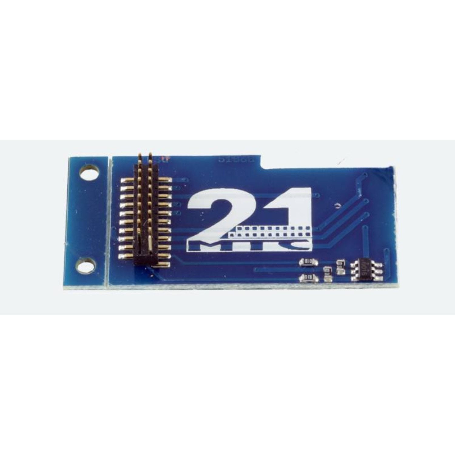 Der Decoder mit 21-pin-Schnittstelle wird einfach auf die Platine aufgesteckt. Ausgangsseitig bietet dieser Adapter bereits verlötete Kabel (ca 20cm Länge) für alle erforderlichen Kontakte. Die Verdrahtung Ihrer Lok ist somit ein Kinderspiel. Für die Funktionen AUX3 und AUX4, welche auf den Decodern als Logikausgänge ausgeführt sind, sind Leistungsverstärker (je ca. 250 mA) mit an Bord, so dass Sie mit ESU Decodern insgesamt bis zu 6 physikalische Funktionsausgänge zur Verfügung haben.