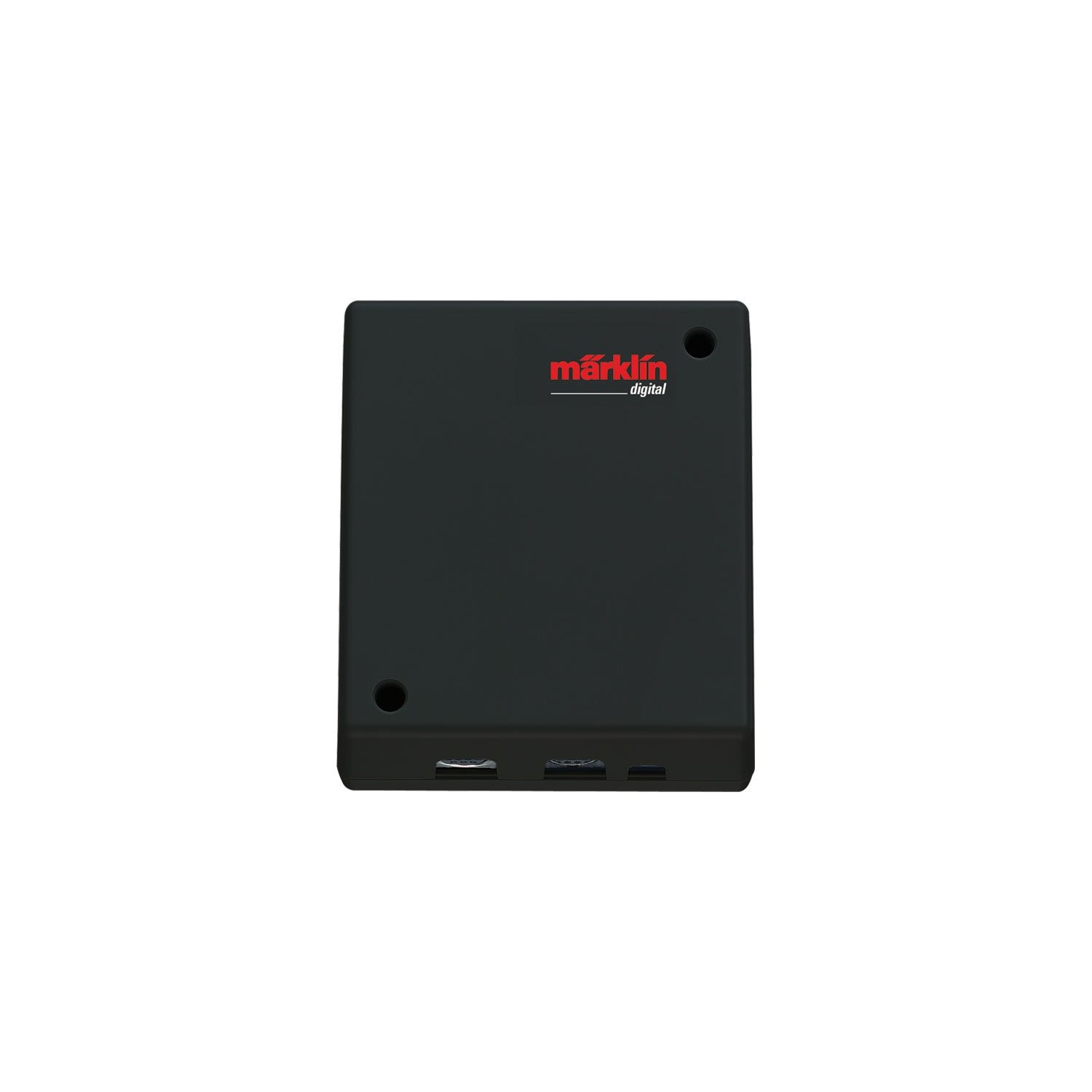 Anschlussbox für die neue, schwarze Mobile Station Art. 60657 für Märklin Spur 1Zum Anschluss eines Schaltnetzteiles 66360 und bis zu 2 Mobile Stations Art. 60657. Abmessungen 96 x 85 x 40 mm