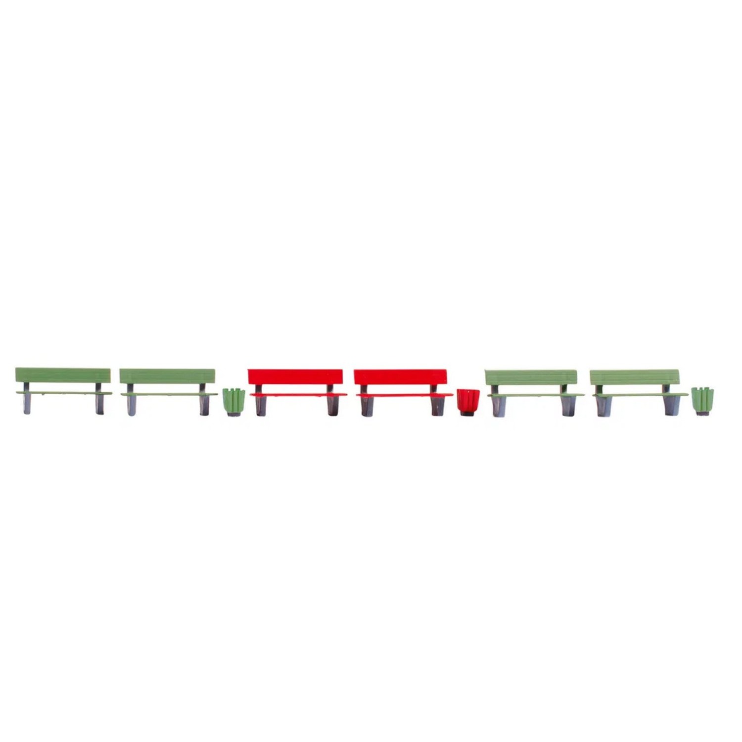 Sorgen Sie auch auf Ihrer Modellanlage für Sitzgelegenheiten mit dem Zubehör-Set "Bänke". Die Bänke kommen besonders gut in Parks zur Geltung!