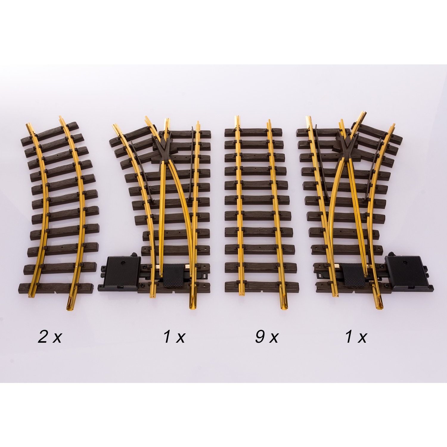 Mit diesem Set können Sie den Gleiskreis aus Ihrem LGB-Starter Set zu einem Oval mit einem Ausweichgleis ausbauen. Dann können sich zwei Züge begegnen. Oder Sie können einen Zug abstellen, Wagen rangieren und die Lok von einem Ende des Zugs zum anderen umsetzen. Die stabile Box enthält: 1 x 12000 Handweiche rechts, 1 x 12100 Handweiche links, 9 x 10000 gerade Gleise, 2 x 11000 gebogene Gleise.