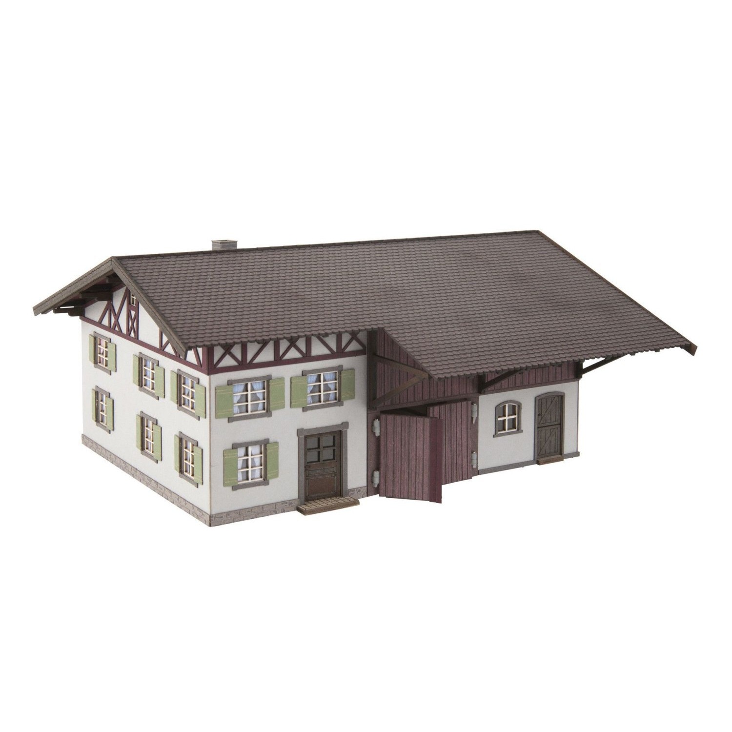 Der Bausatz ist in verschiedenfarbigen Laser-Kartonen ausgeführt und wird durch kleine Zurüstteile ergänzt, mit denen wunderschöne Details, wie z. B. Vogelkästen und ein Krutzifix beliebig angebracht werden können.