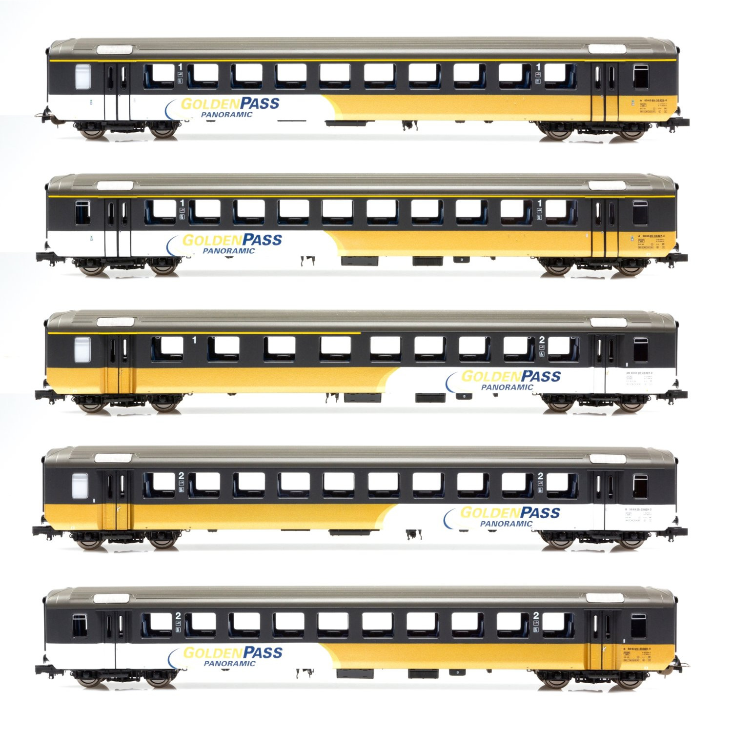 BLS 5-teiliges Schnellzugwagen-Set EW I "Goldenpass" - Diese Wagen verfügen serienmässig über WS-Achsen für das 3-L-Märklin-System