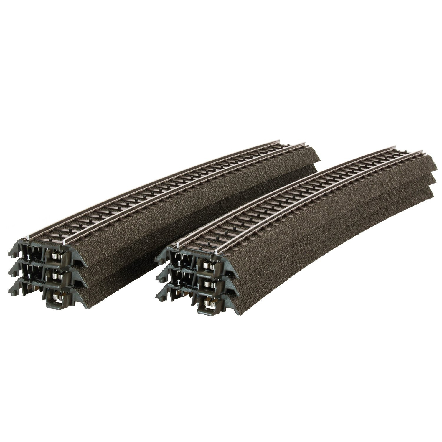 C-Gleispackung 6 Stk. gebogen. Radius 1114,6 mm. Bogen 12,1°. Gegenbogen zur schlanken Weiche und Kreuzung. Auch zum Streckenbau geeignet.