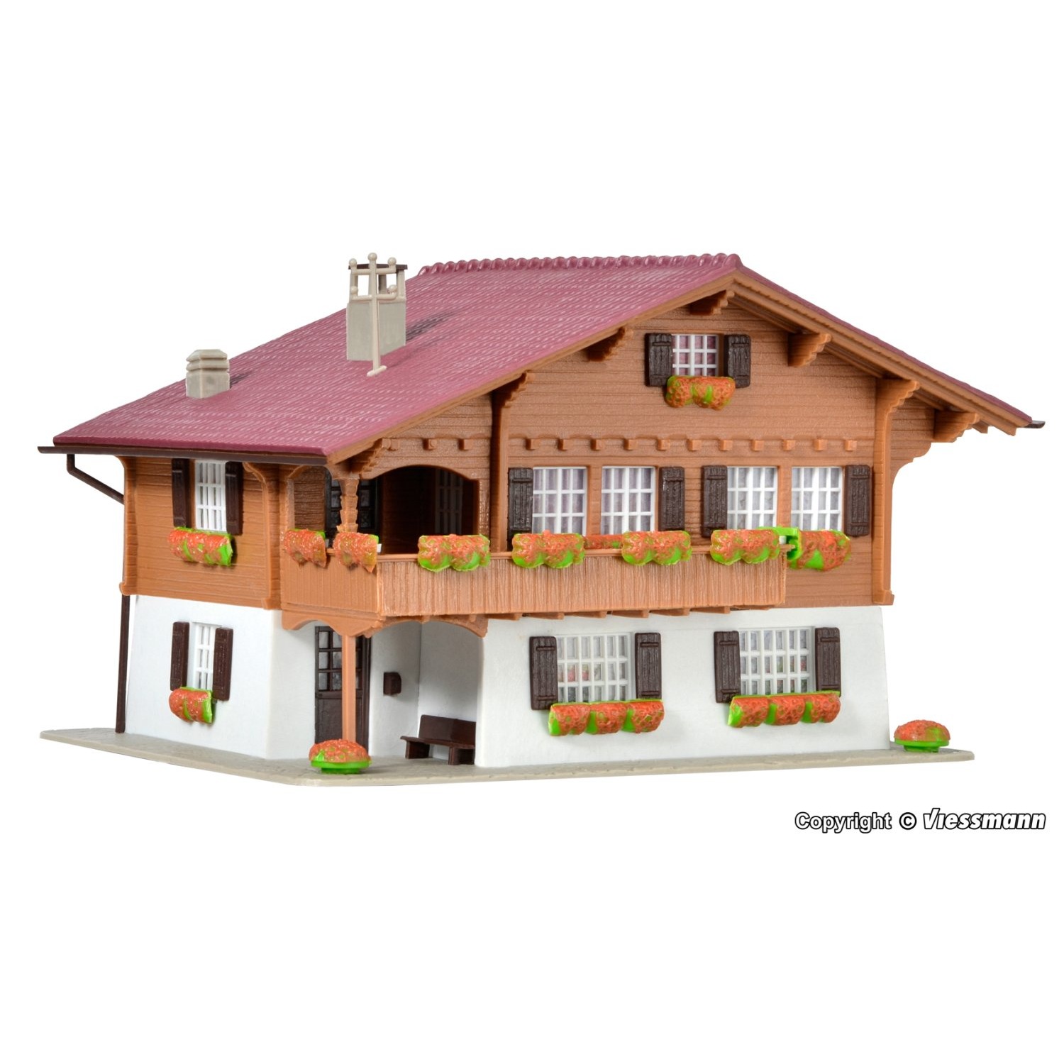 Das Dorf Brienz liegt umgeben von einer reizvollen Berglandschaft am östlichen Ende des Brienzersees im Kanton Bern in der Schweiz. Bis heute verfügt Brienz über eine eigene Holzbildhauerschule und eine Geigenbauschule. Grund genug, das heimelige Holzschnitzerdorf im nächsten Urlaub zu besuchen und im gemütlichen Chalet auf dem Berg zu übernachten... Der fein detaillierte Bausatz dieses alpenländischen Chalets passt wunderschön zwischen freie Weiden und alpenländische Nadelwälder und holt damit einen Hauch Urlaubsatmosphäre und ein Stück ?guter heiler Welt? auf die eigene Modellbahn. Maße: 12 x 9 x 7 cm. Schwierigkeitsgrad: 2 (Fortgeschrittene)