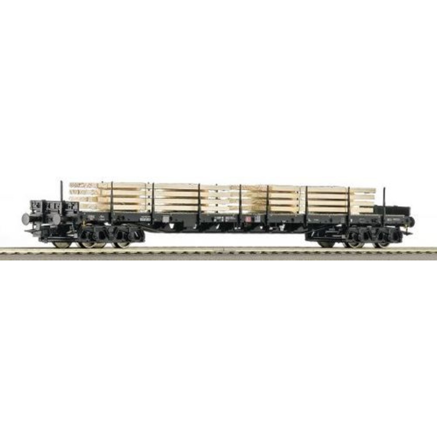 DB Rungenwagen beladen mit Holzstapel