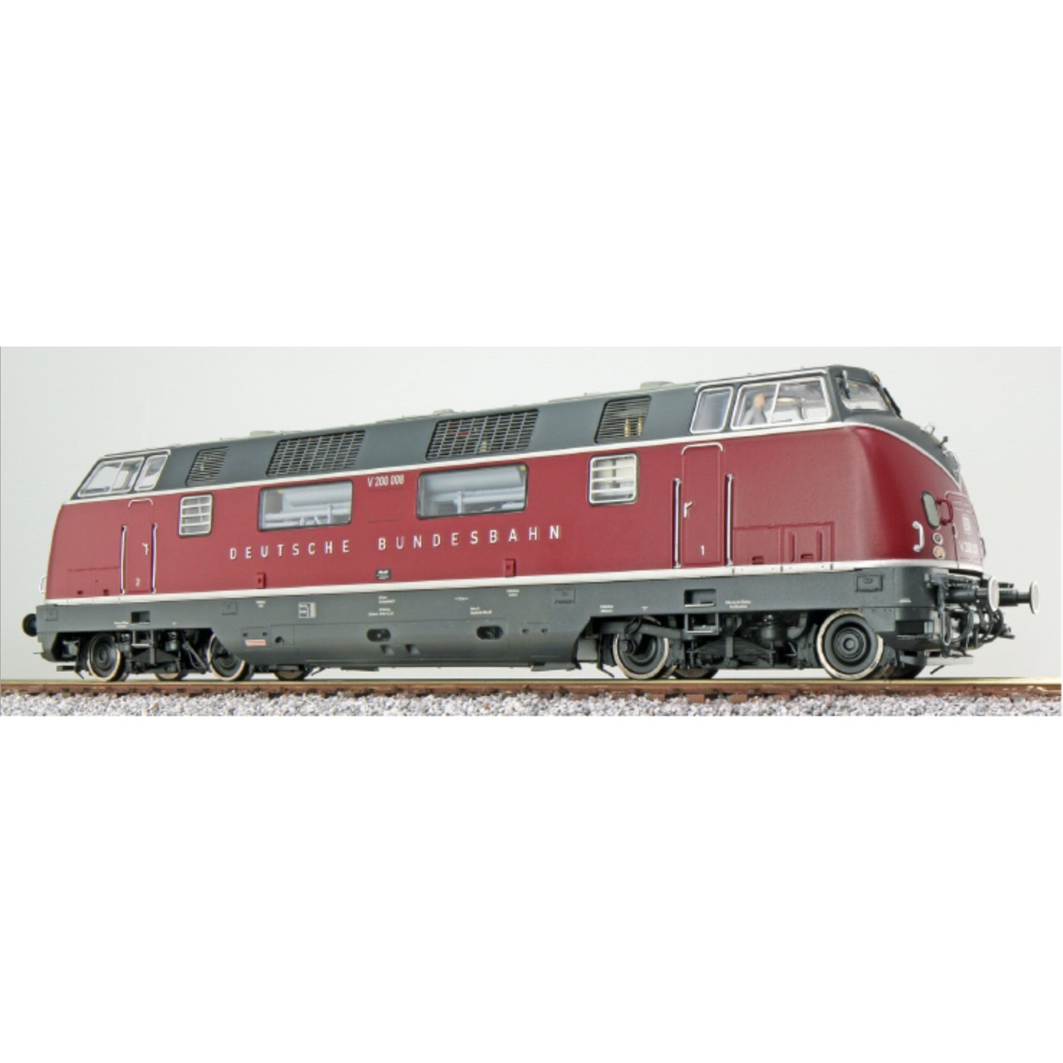 Die V200 war DAS Lok-Gesicht der Deutschen Bundesbahn (DB) in den 50er-Jahren. Keine andere Diesellok prägte das Bild der jungen DB so sehr, wie die lange Lok mit den charakteristischen Aluminium-Zierstreifen, die an den Stirnseiten zu einem stilisierten „V“ zuliefen. In den ab 1956 gebauten Serienloks kamen 1100 PS (bei 1500 U/min) starke 12-Zylindermotoren von Daimler-Benz (MB 820 Bb), MAN (12 V 18/21) oder Maybach (MD 650) zum Einsatz. Für die Zugheizung diente ein Dampfheizkessel von Hagenuk, der in der Lage war, einen Schnellzug mit zehn bis zwölf Wagen zu heizen. Eine Besonderheit war die Ausrüstung aller V200.0 mit einer Vielfachsteuerung, die Doppeltraktionen und den Wendezugbetrieb ermöglichte. Mit Krauss-Maffei (V200 001 – 005, V200 026 – 086) und MaK (V200 006 bis 025) lieferten nur zwei Hersteller die 86 Lokomotiven an die DB. Die MaK-Loks unterschieden sich an der Front markant durch eine flachere Ausführung des „V“ von den Krauss-Maffei-Loks. Erstzuteilungen von Serienloks erhielten die Bahnbetriebswerke (Bw) Frankfurt-Griesheim (15 Stück), Hamburg-Altona (19), Hamm P (32) und Villingen/Schwarzwald (20). Bereits ab Werk erhielten V200 056 bis 086 statt des auffälligen Schriftzugs „Deutsche Bundesbahn“ einfache DB-Logos an den Seiten. Ab den frühen 1970er-Jahren entfernte man die Aluminium-Zierleisten und verpasste den Loks als Trennung zwischen roten und grauen Partien eine Zierlinie. Drei V200 lackierte man in den 1970er-Jahren in den damals modernen Farbtönen Ozeanblau und Elfenbein. Das markante »V« an den Stirnseiten entfiel. Nachdem die DB die 220 schon ab 1978 abstellte, bot sie die teilweise gerade einmal 20 Jahre alten Loks ausländischen Bahnen zum Kauf an. Insgesamt 30 Loks fanden Abnehmer in Italien, Frankreich (Algerien) und Spanien.