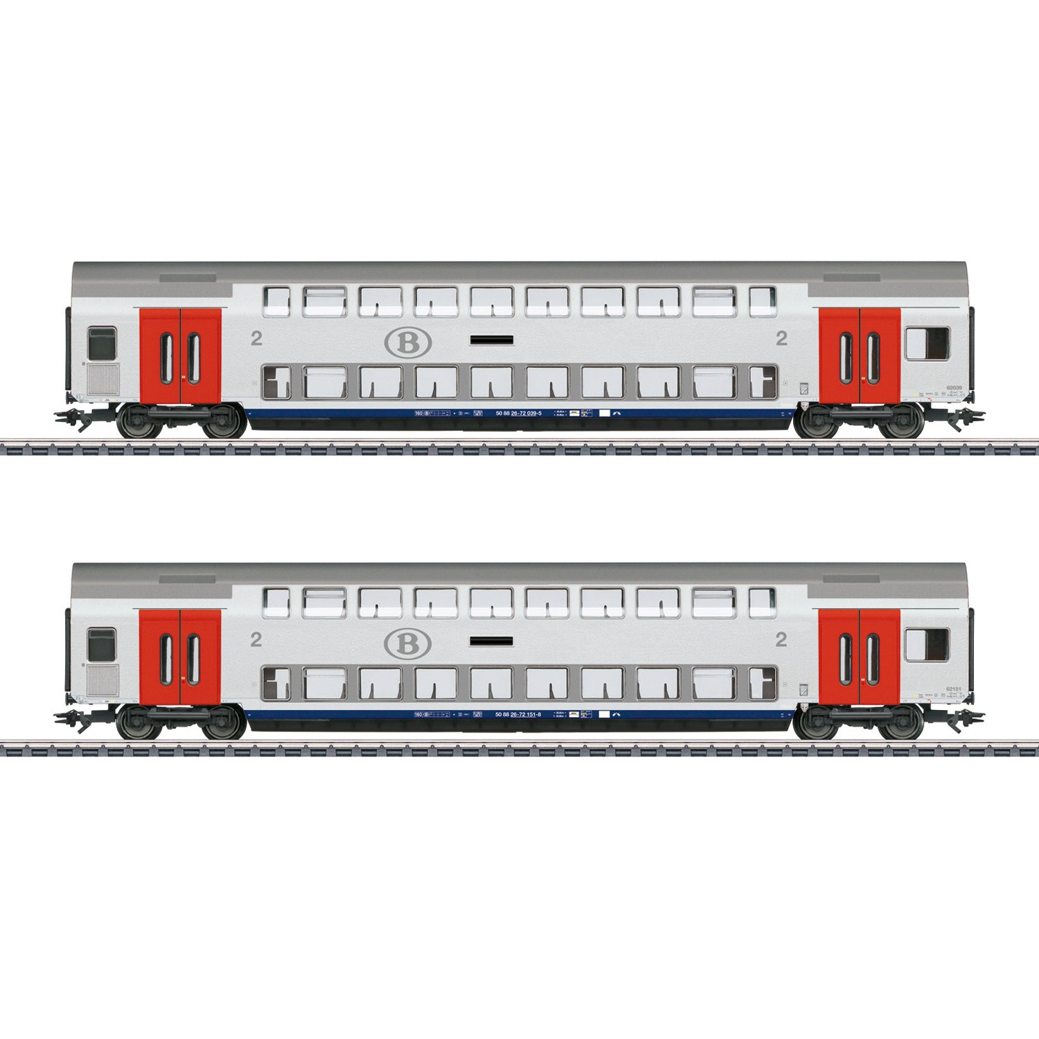 Vorbild: Zwei Doppelstockwagen Bauart M6, 2. Klasse, der SNCB. Lichtgraue Grundfarbgebung. Betriebszustand ab 2023.