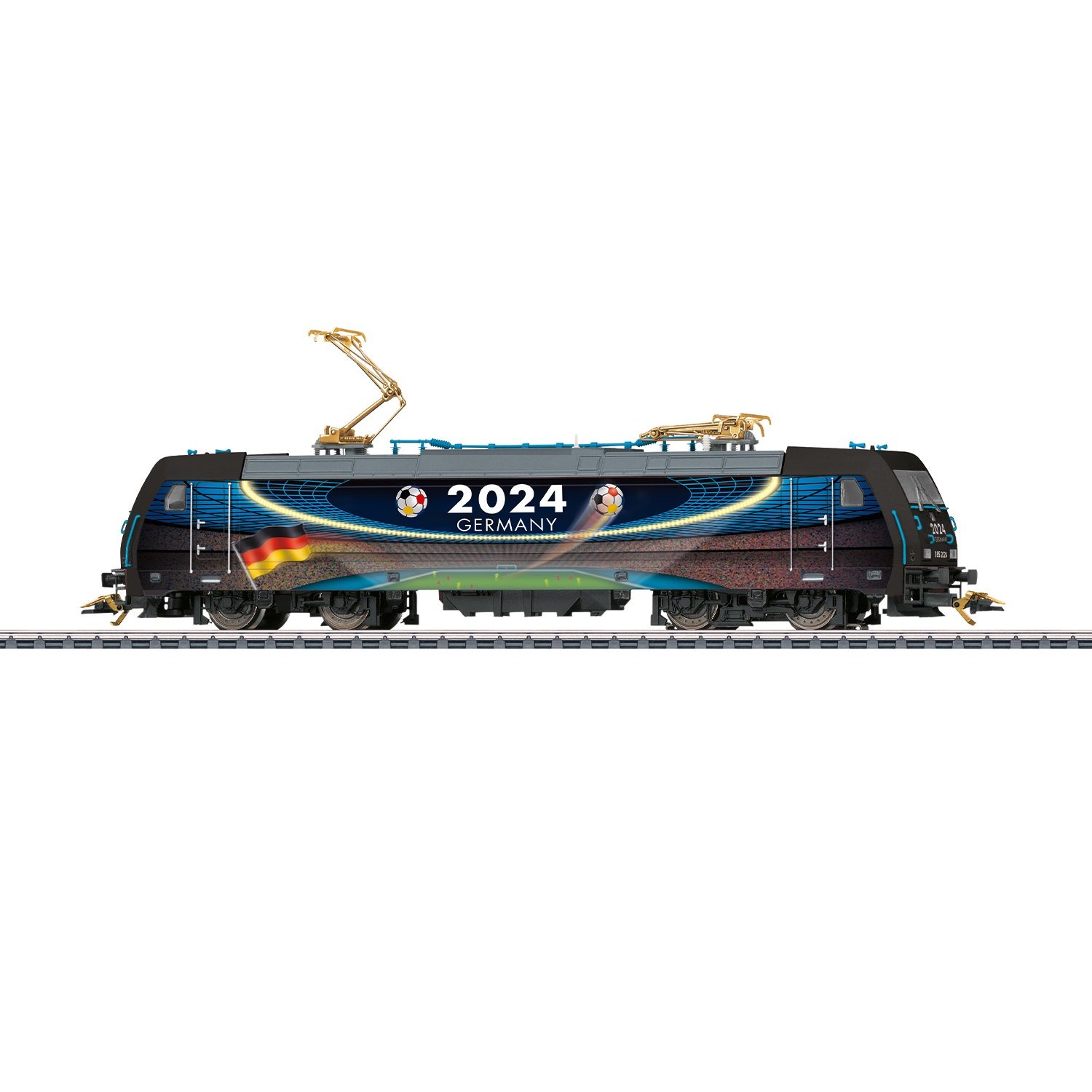 Modell: Mit Digital-Decoder mfx und umfangreichen Geräuschfunktionen. Spezialmotor, zentral eingebaut. Alle vier Achsen über Kardan angetrieben. Haftreifen. Fahrtrichtungsabhängig wechselndes Dreilicht-Spitzensignal und zwei rote Schlusslichter konventionell in Betrieb, digital schaltbar. Spitzensignal an Lokseite 2 und 1 jeweils separat digital abschaltbar. Wenn Spitzensignal an beiden Lokseiten abgeschaltet ist, dann beidseitige Funktion des Doppel-A-Lichtes. Beleuchtung mit wartungsfreien, warmweissen und roten Leuchtdioden (LED). Griffstangen an den Lokfronten separat angesetzt. Zwei mechanisch funktionsfähige, mit 24-karätigem Gold vergoldete Dachstromabnehmer. Länge über Puffer 21,7 cm.