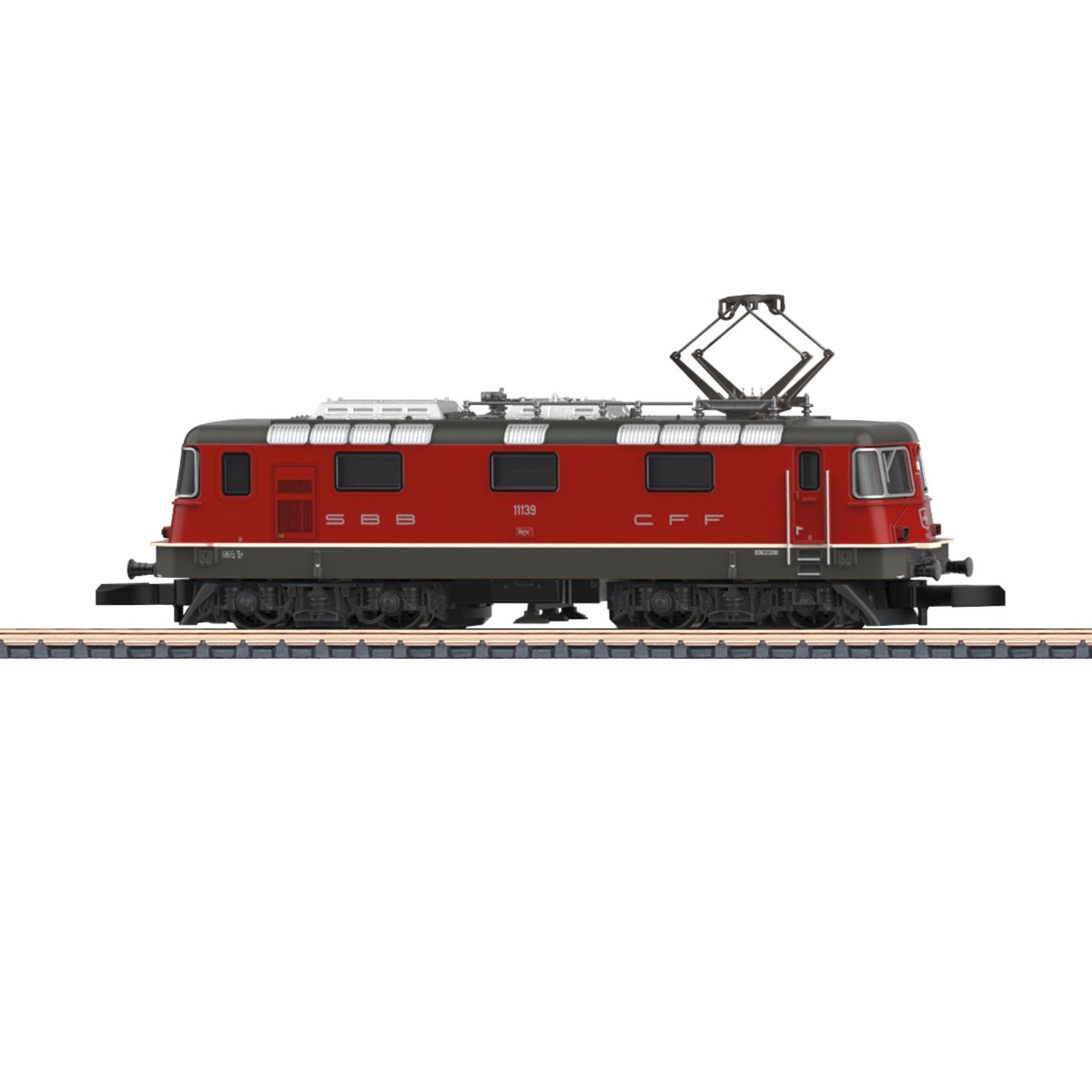 Vorbild: Elektrolokomotive Re 4/4 II der Schweizerischen Bundesbahnen (SBB) mit einem Stromabnehmer, im aktuellen Betriebszustand.
