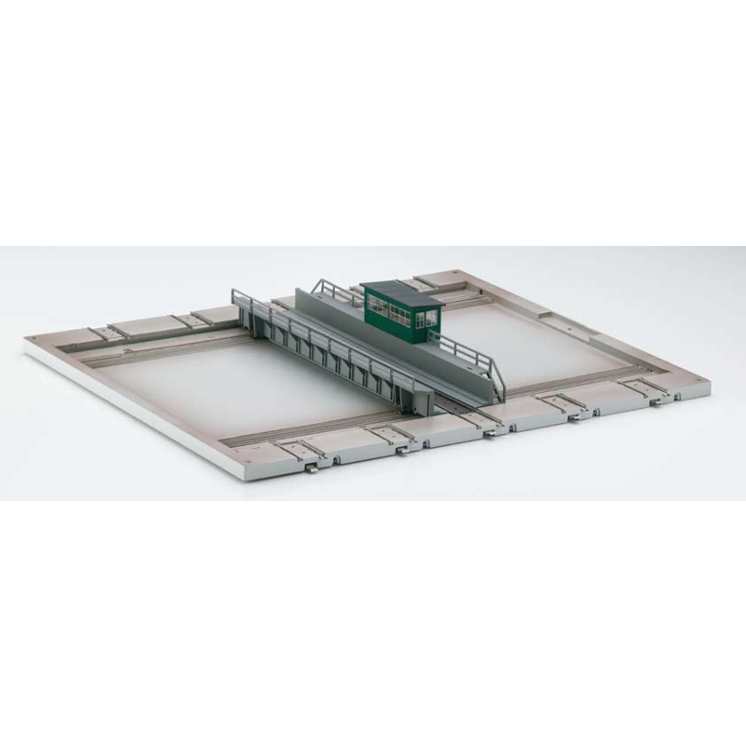 Gleisanschlüsse für Märklin Metallgleise. Mit den entsprechenden Übergangsgleisen natürlich auch für C-Gleise und Kunststoffgleise verwendbar. Bühne mit Motorantrieb für Vor- und Rückwärtslauf im Maschinenhaus. Steuergerät und Verbindungskabel zur Fernsteuerung. Bühne hält automatisch an den Gleisanschlüssen an. Fahrstromversorgung der Abstellgleise über die Plattform. Zusätzliche Anschlüsse für die Oberleitung. Grösse des Sockels 360 x 420 mm. Bühnenlänge 288 mm.