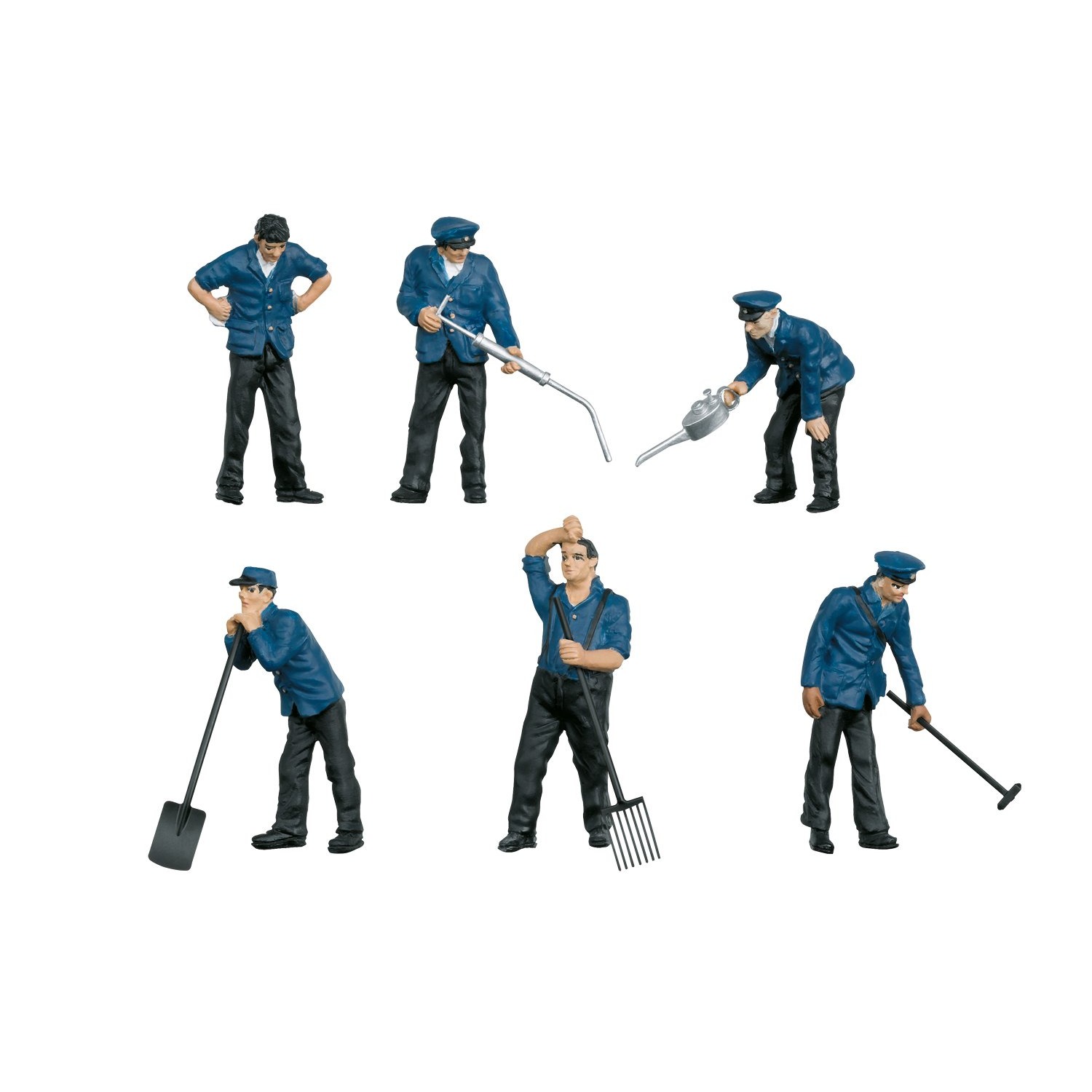 Figuren-Set bestehend aus 6 unterschiedlichen, bei der Deutschen Bahn angestellten Bahnbetriebswerker-Personal. Figuren sind aus Messing-Feinguss im Schleuderguss Verfahren hergestellt und handbemalt. Figuren einzeln nicht erhältlich.