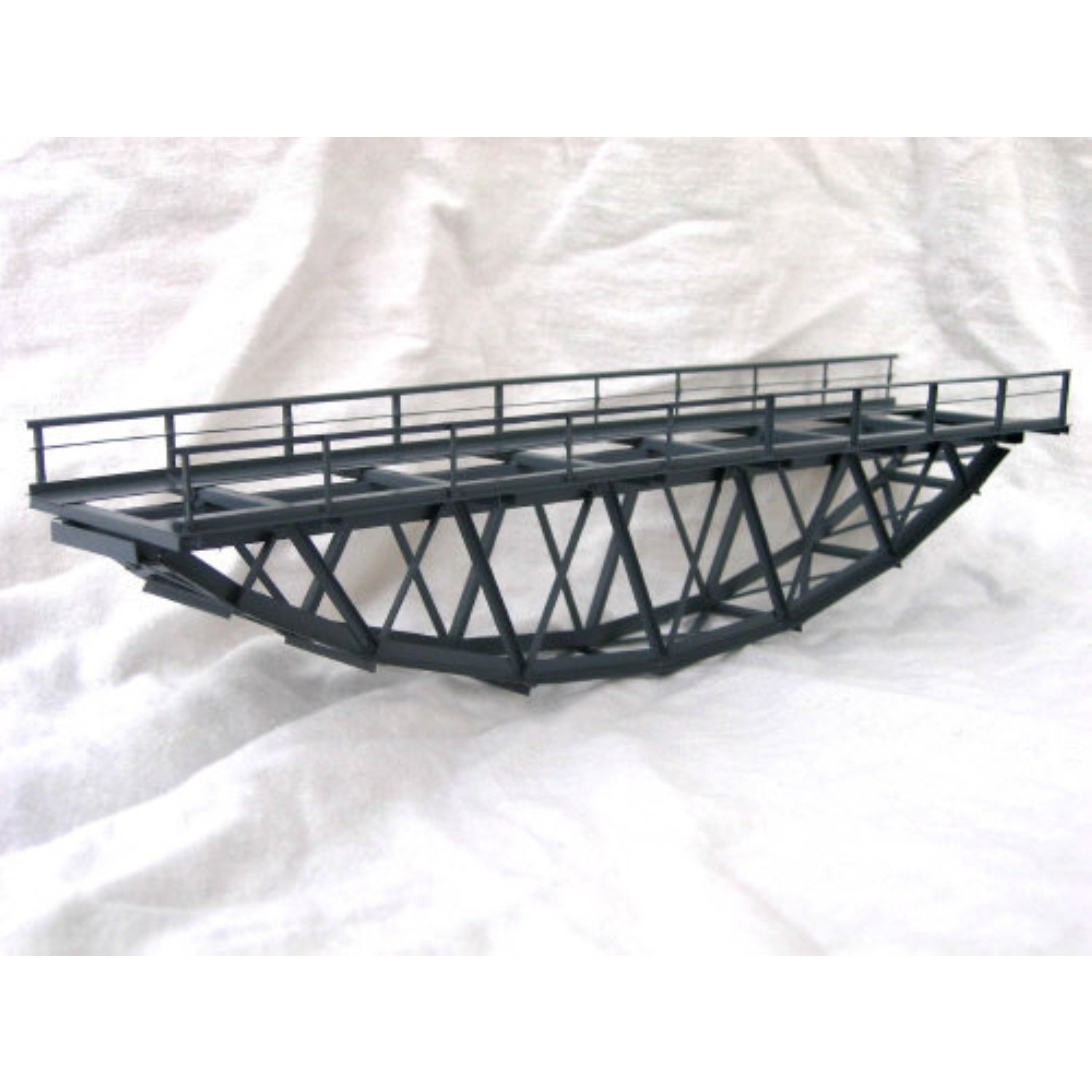 Sehr filigrane und doch stabile, handgefertigte Metallbrücke. Für alle Gleissysteme verwendbar. Die Brücke ist fertig gebaut und grau lackiert.