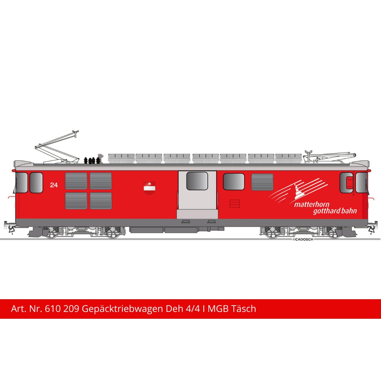 Spur LGB: MGB Gepäcktriebwagen Deh 4/4 l 24 "Täsch", rot. - Lampentyp rund