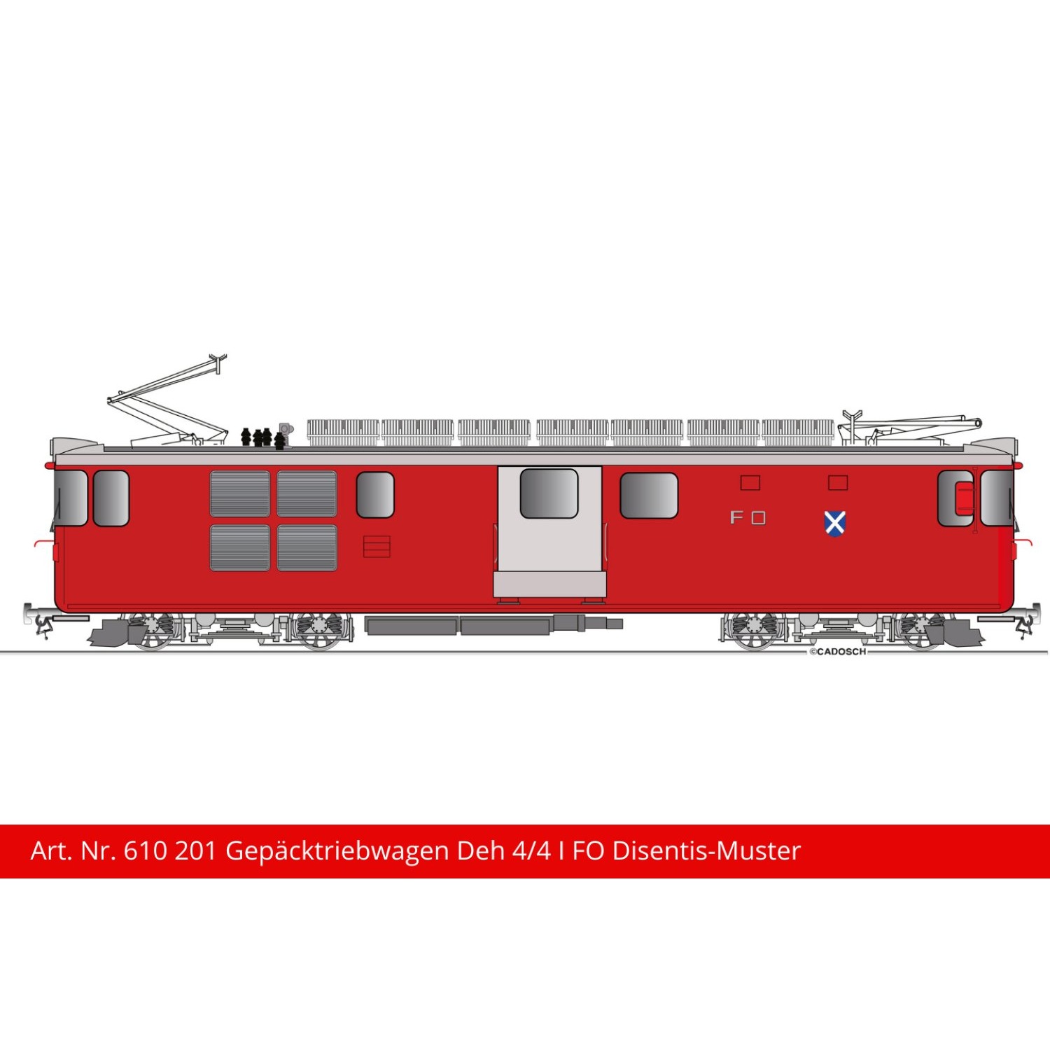Vorbild: Der Deh 4/4 I ist ein Gepäcktriebwagen den die damalige Furka-Oberalp-Bahn FO 1972 bei der Schweiezerischen Industrie SLM und SIG für Adhäsions- und Zahnradbetrieb in einer Serie von fünf Fahrzeugen beschaffte. Gleichzeitig beschaffte die BVZ Brig – Visp – Zermatt Bahn vier, mechanisch ähnliche aber elektrisch andersartige Fahrzeuge. Die Deh 4/4 I werden meist in Pendelzügen zusammen mit einem Steuerwagen ABt eingesetzt, kommen aber auch als eigenständiges Triebfahrzeuge für Personen- und Güterzüge zum Einsatz. Auch die Autozüge über den Oberalp werden meistens mit Deh 4/4 I geführt. Heute sind alle Fahrzeuge bei der Matterhorn-Gotthard-Bahn MGB noch im Dienst.