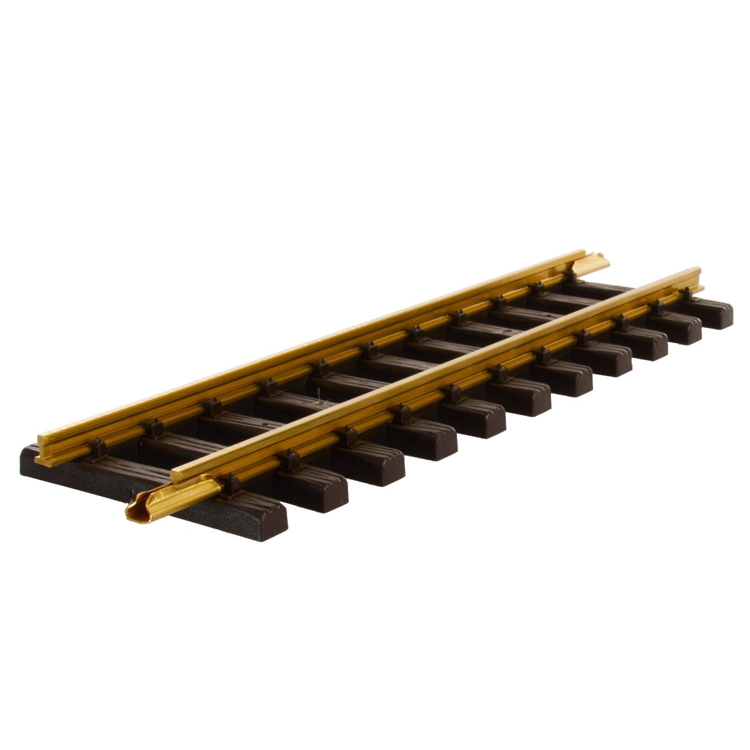 Das 300 mm lange gerade Gleis ist eine der Grundlagen des LGB-Gleissortiments. Für alle LGB-Gleise werden massive Messingschienen verwendet, um so einen zuverlässigen Betrieb draussen und drinnen zu garantieren.