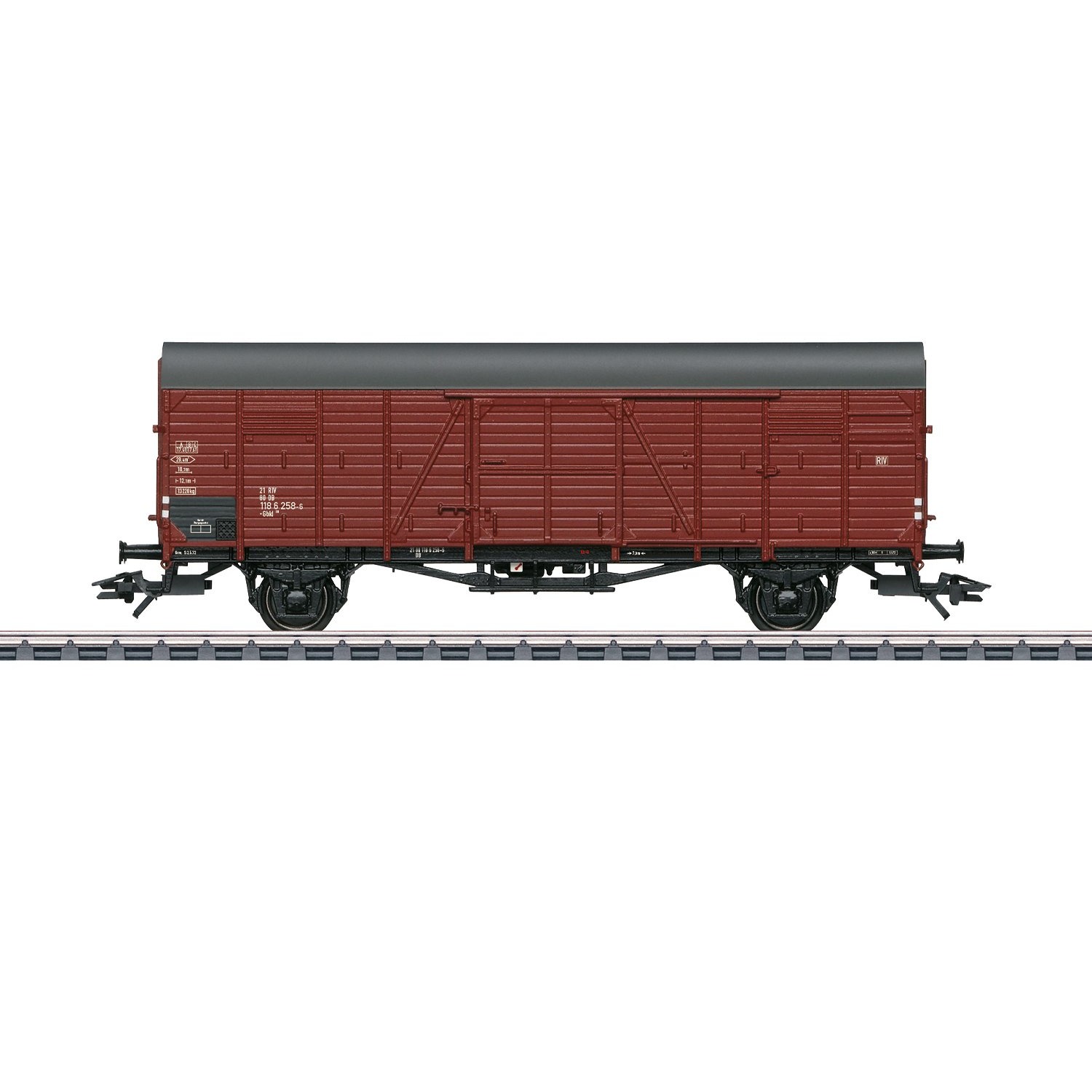 Vorbild: Gedeckter Güterwagen Gbkl 238 der früheren Austauschbauart Gl "Dresden" der DB. Kurze Ausführung, ohne Handbremse, Bremserbühne und Bremserhaus. Ausführungen ohne Stirnwandtüren. Betriebszustand um 1972.