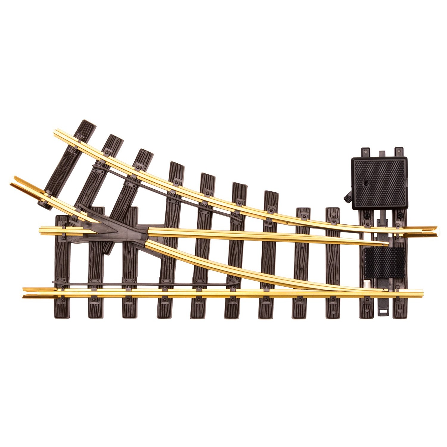 Gerades Gleis: 300 mm. Abzweigendes Gleis: rechts, R1, 30°. Der Antrieb kann rechts oder links montiert werden. Nachrüstbar mit dem elektrischen LGB-Weichenantrieb (LGB 12010).