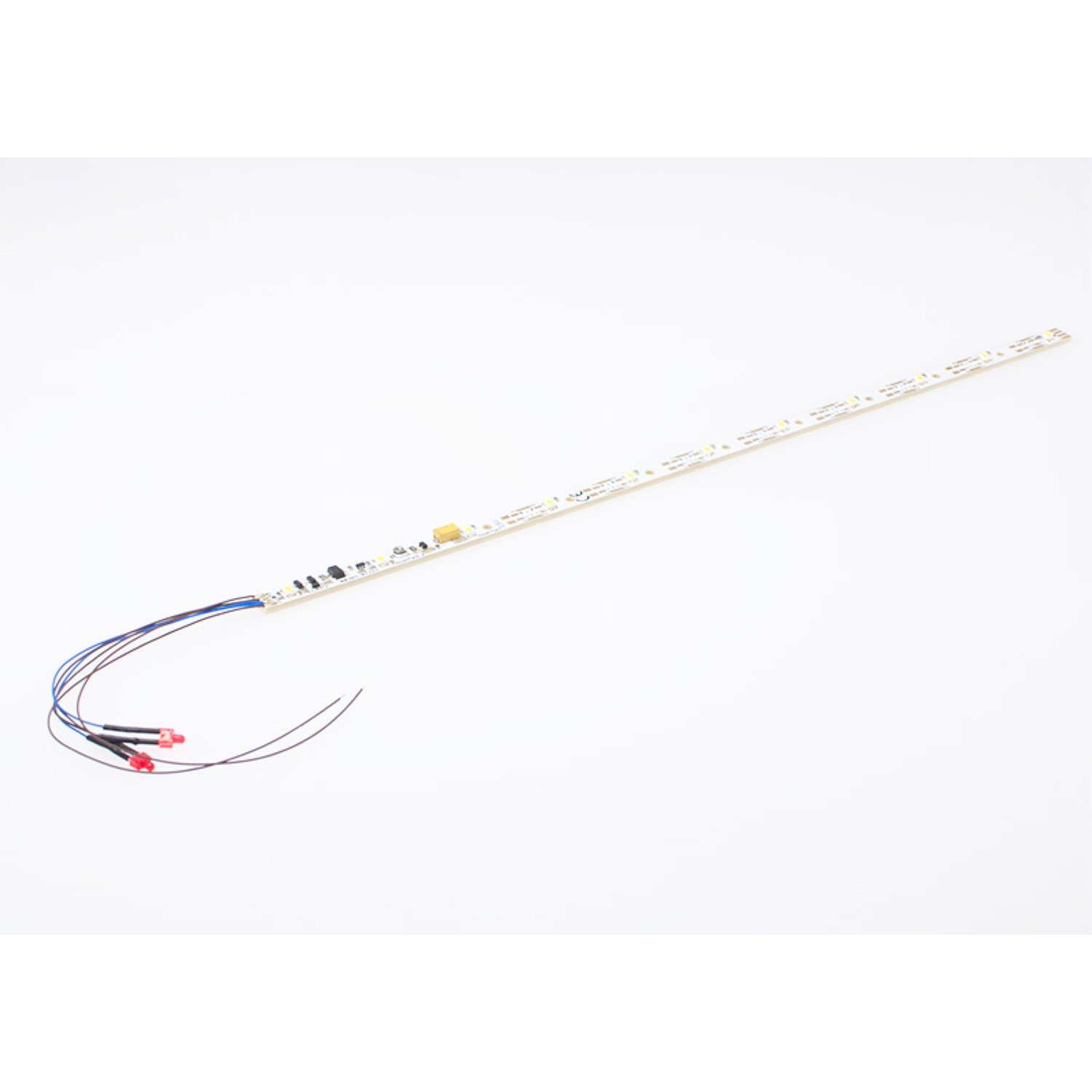 Die Platine kann z.B. mit doppelseitigem Klebband unter dem Dach befestigt werden. Die Wagen können so mit einem gleichmässigen, warmweissen Licht flackerfrei beleuchtet werden können. Eine eingebaute Konstantspannungsquelle sorgt dafür. Die Helligkeit ist individuell einstellbar. Die Beleuchtungen können nahezu beliebig gekürzt und damit optimal auf die Wagenlänge abgestimmt werden. Jede Innenbeleuchtung verfügt zusätzlich gerade noch über ein Schlusslicht mit 2 roten LED.