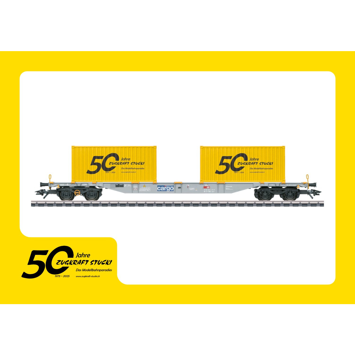 Jubiläumsangebot 50 Jahre Zugkraft Stucki - SBB Container-Tragwagen, beladen mit 2 Containern "ZUGKRAFT STUCKI"