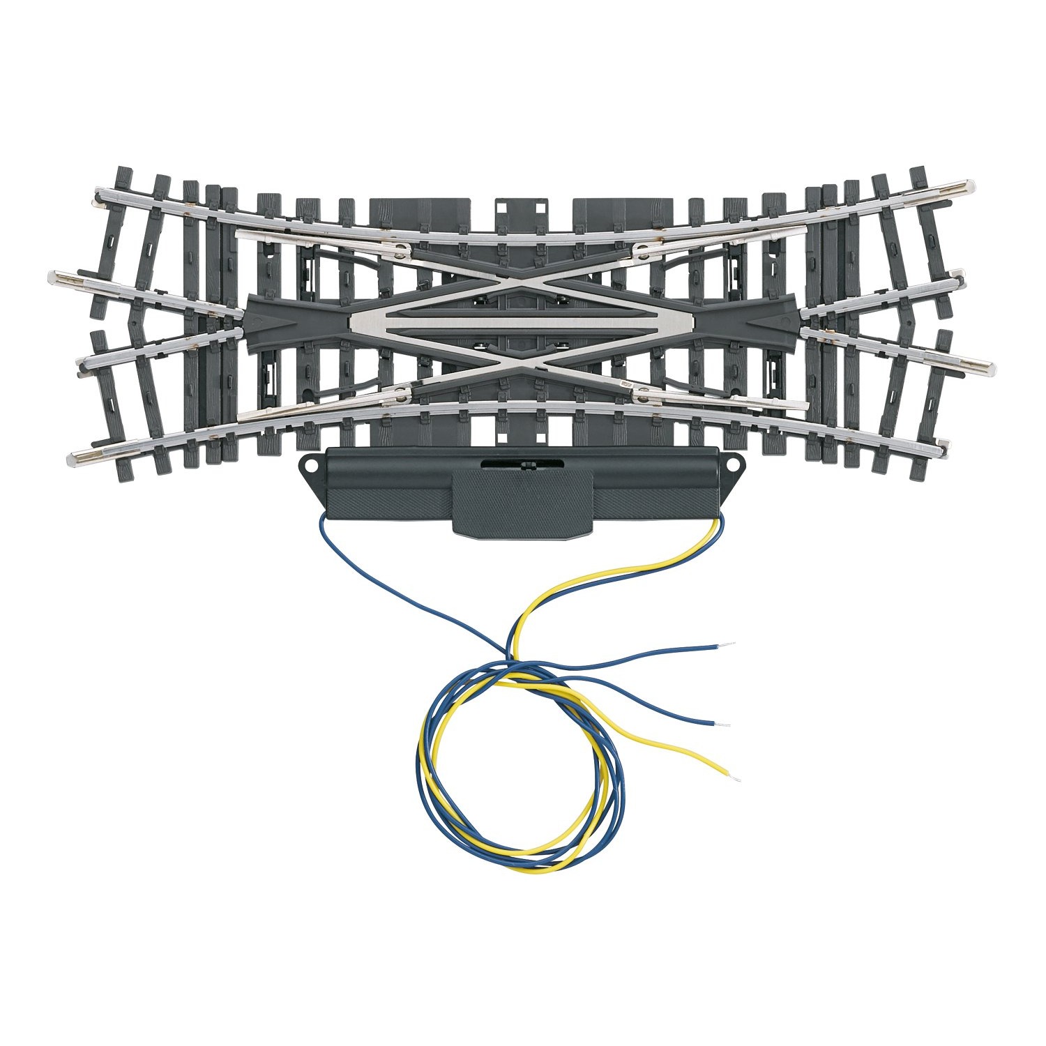 Mit abnehmbarem elektromagnetischem Antrieb (75491). Kreuzungswinkel 22° 30’. Bogen entspricht 2232. Länge der geraden Gleise 168,9 mm.