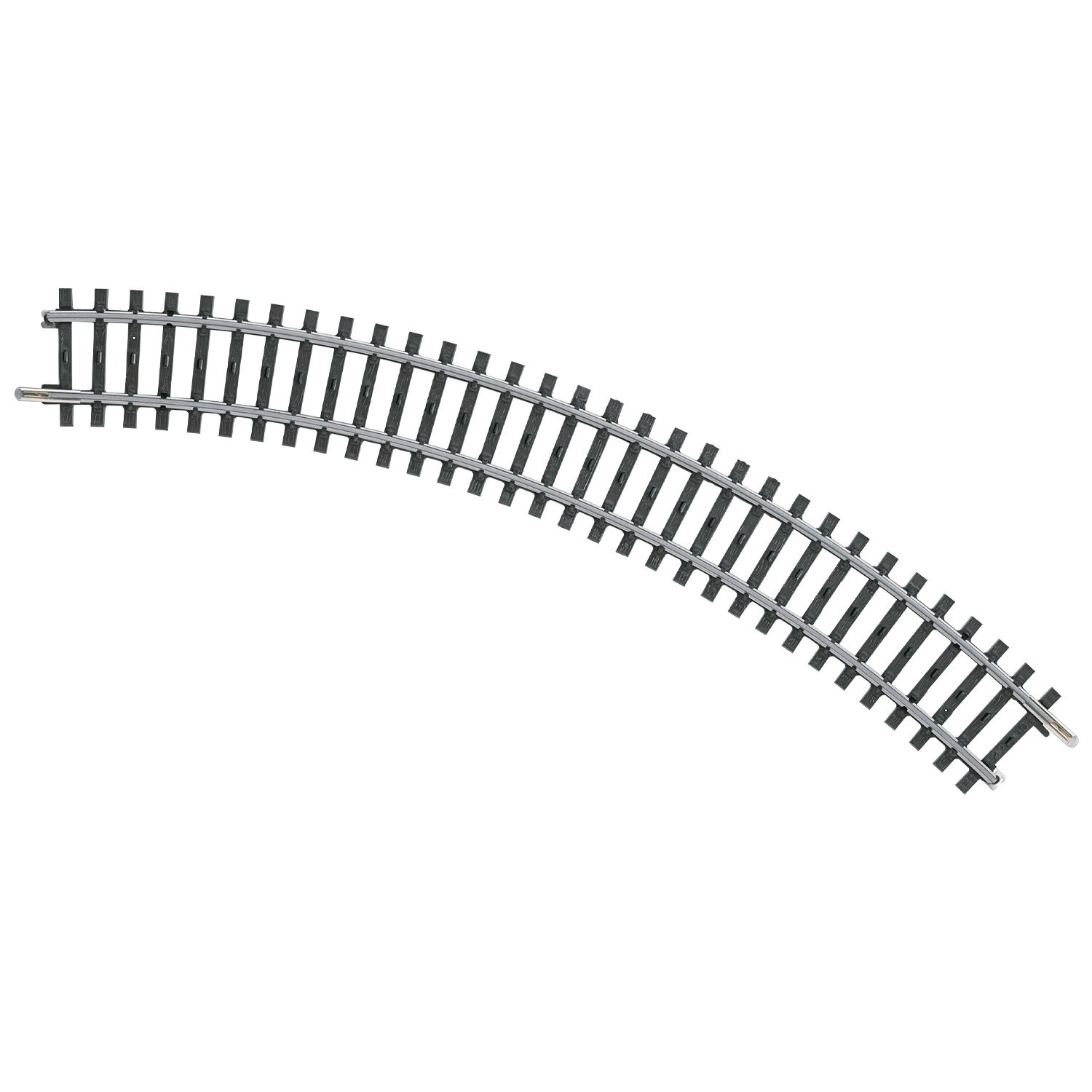 K-Gleis gebogen - Länge 1/1 = 45-. Kleiner Radius für Nebenstrecken und Industriebahnen. Nicht mit langen Fahrzeugen befahrbar.