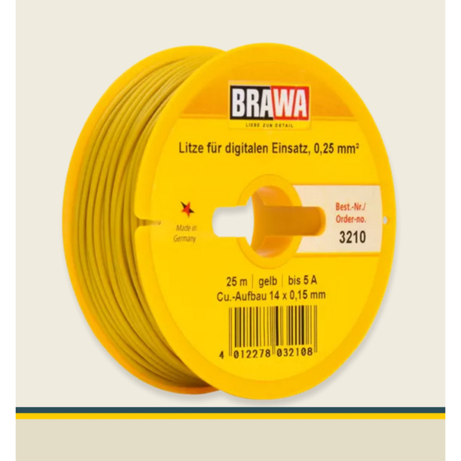 Kabel auf Abrollspule 25 m, 0,25 mm², bis 5 A belastbar, gelb