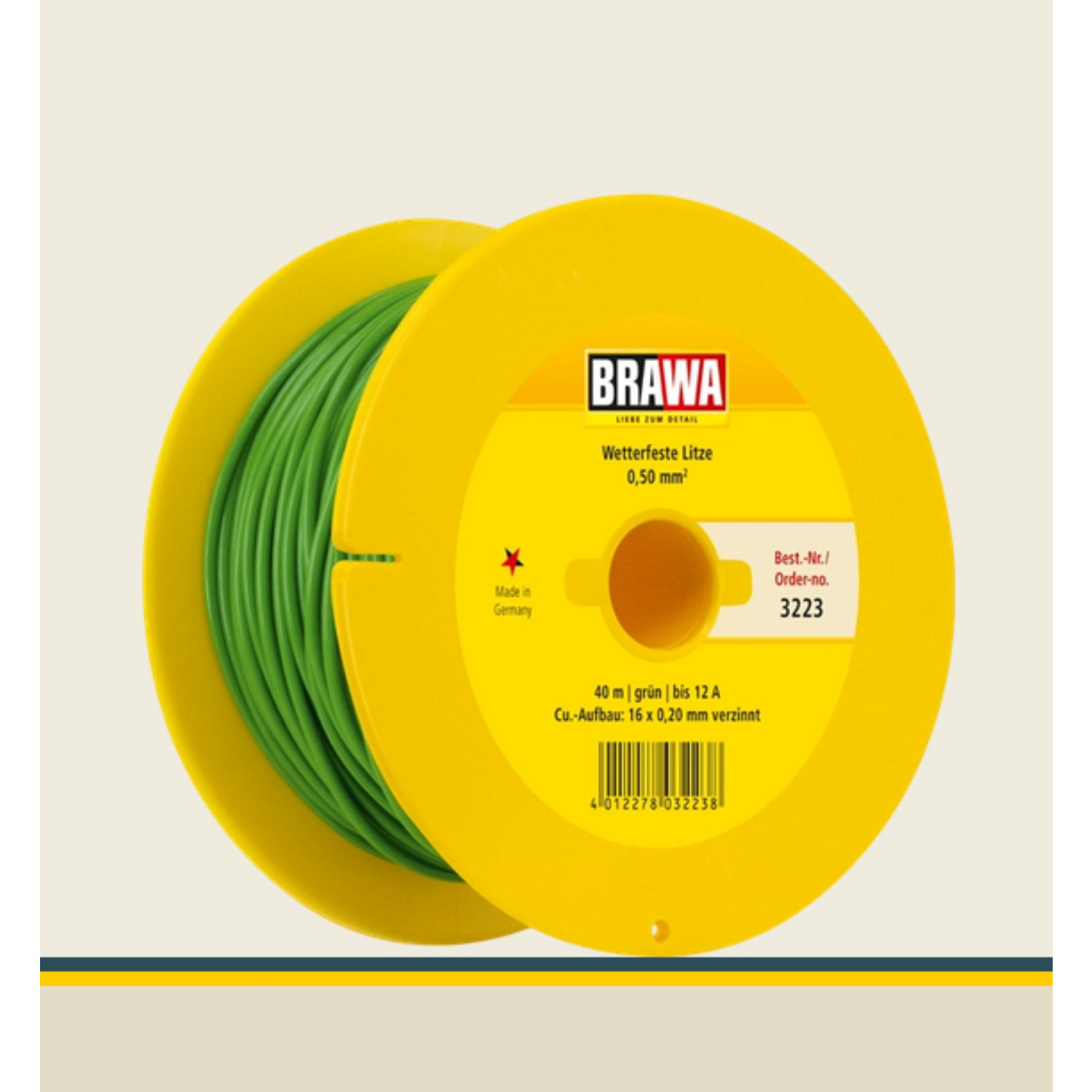 Kabel auf Maxi-Abrollspule 40 m, 0,50 mm², bis 12 A belastbar, grün