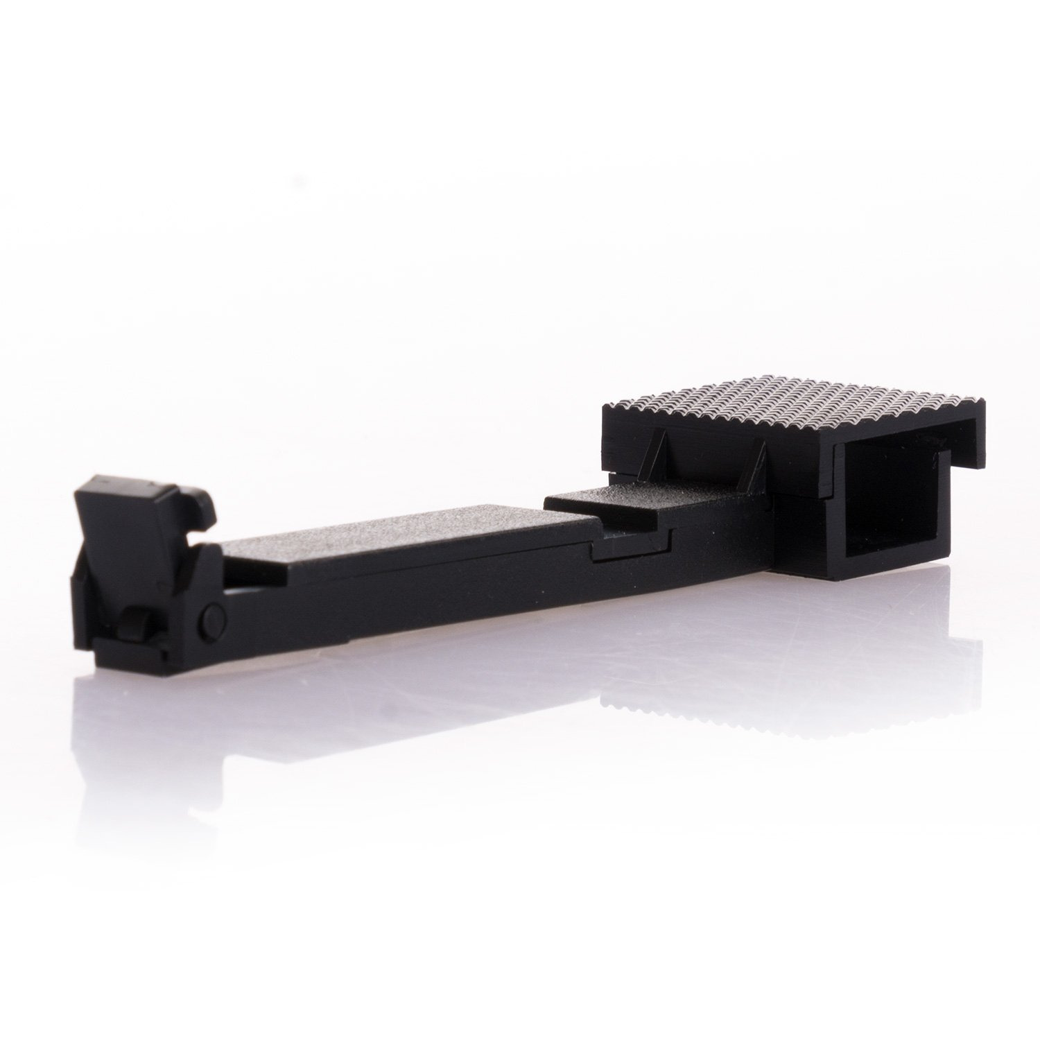 Mit dem Kabelhalter bringen Sie Ordnung in den "Kabelsalat"! Der Halter wird seitlich am LGB Gleis befestigt. Die Kabel können dann einfach in die Öffnung gelegt werden.