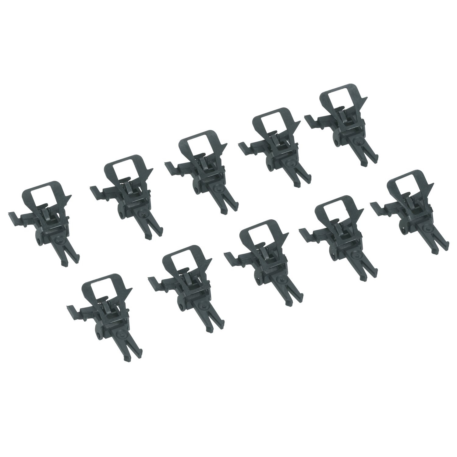 Inhalt: 10 Kurzkupplungsköpfe. Zum Einsetzen in Fahrzeuge mit Norm-Kupplungsaufnahme (NEM 362) und Kulissenführung, sowie bei Fahrzeugen mit geringerer Pufferhöhe nach NEM 303. Kompatibel mit Standardkupplungen (NEM 360).