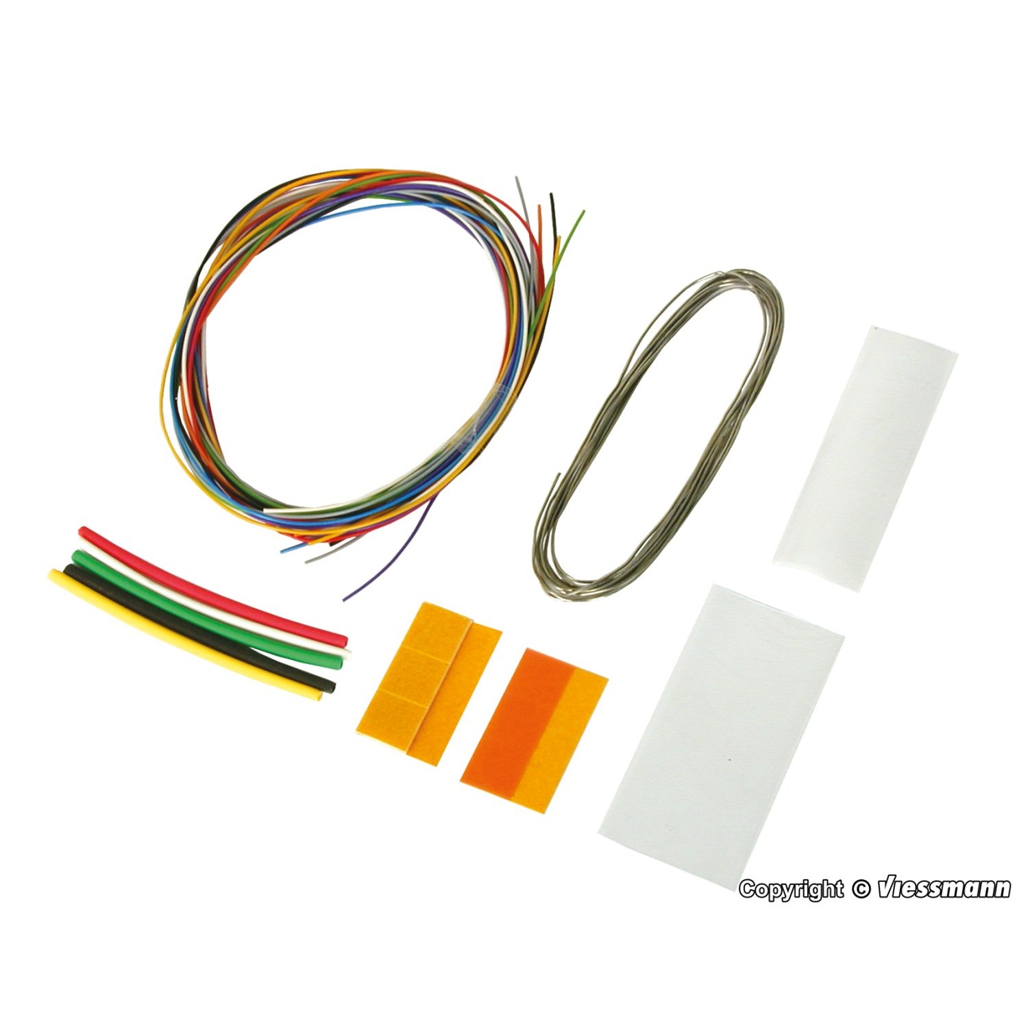 Enthält alle notwendigen Verbrauchsmaterialien zum problemlosen Einbau von Digitaldecodern in Lokomotiven. Dünne, hochflexible Litzen, Schrumpfschlauchstücke (jeweils farbig sortiert) sowie dünnes Spezial-Lötzinn (Durchmesser 0,5 mm) sind ebenso enthalten wie Klebepads in verschiedenen Ausführungen. Unentbehrlich für jeden Digitalbahner.