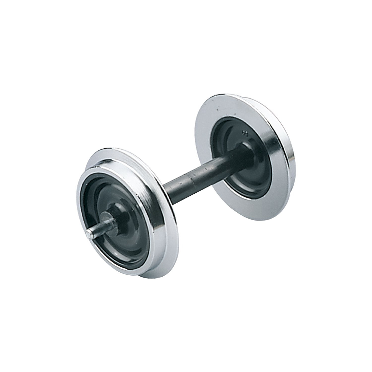 Scheibenradsatz mit hartverchromten Metall-Radring. Durchmesser 31 mm. Zum einfachen Austausch der Kunststoff-Scheibenradsätze.