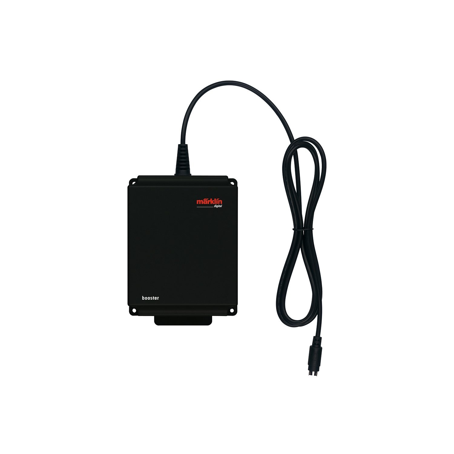 Leistungsverstärker für digital gesteuerte grosse Anlagen. Multiprotokollfähig in Verbindung mit der Central Station 60216, 60226 sowie 60215. Anschluss über 7-polige Datenbus-Leitung direkt an die Central Station 60216, 60226 sowie 60215. Mehrere Booster in einem System über Terminals 60145 einsetzbar. Automatische Anmeldung an der Central Station 60216, 60226 sowie 60215. Statusanzeige durch LED am Booster und grafisch im Display der Central Station. Bei Verwendung des Schaltnetzteiles 60061 ergibt sich eine maximale Ausgangsleistung von 58 VA und ein maximaler Strom von 3 A.