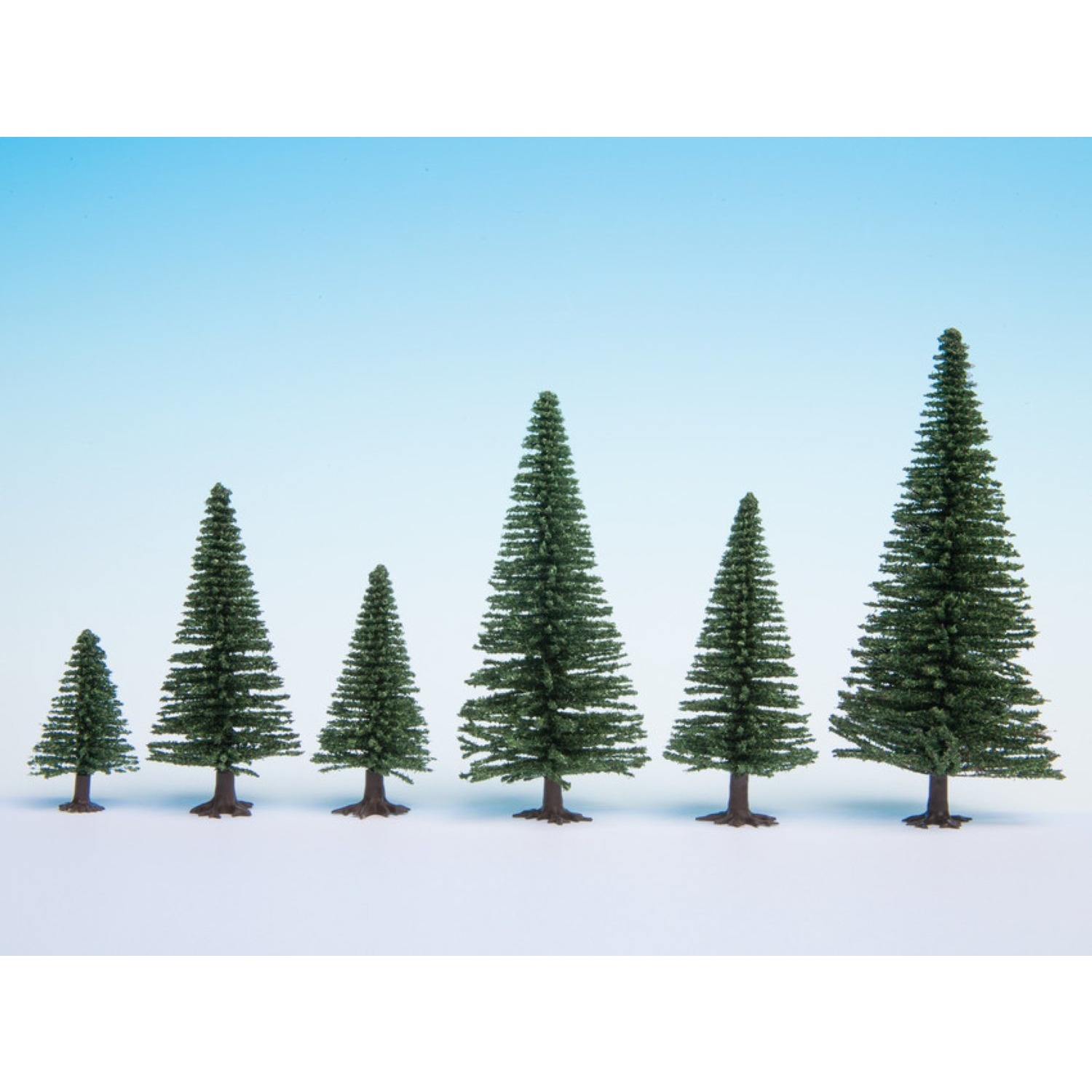 Tannen wie im Schwarzwald! Die preiswerten Hobby-Bäume von NOCH sind ideal, um auf Ihrer Anlage richtig aufzuforsten. Die Modelltannen sind die perfekte Lösung, um für wenig Geld für dichte Wälder und natürlich wirkende Baumgruppen zu erschaffen. Die Bäume sind in verschiedenen Höhen verfügbar. Je nach dem wie viele Bäume Sie benötigen gibt es die Modellbäume in den Verpackungsgrößen 50, 25, 10 oder auch nur 5 Stück.