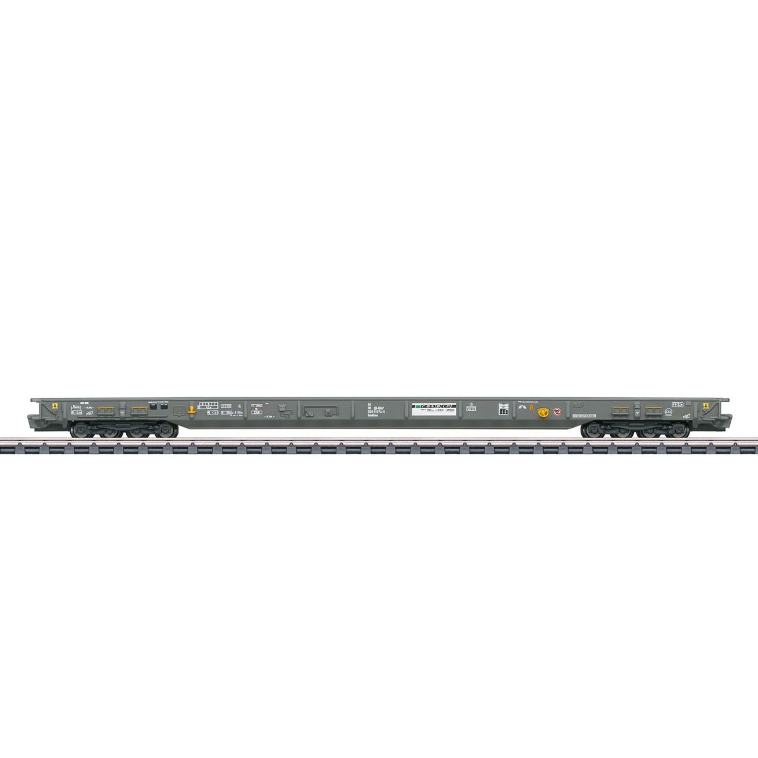 Modell: Wagenaufbau aus Metall. Zwischenwagen ohne Pufferbohlen. Haltekeile für LKW-Modelle und Sonderkupplung für Niederflurwagen liegen bei. Länge 21,4 cm.