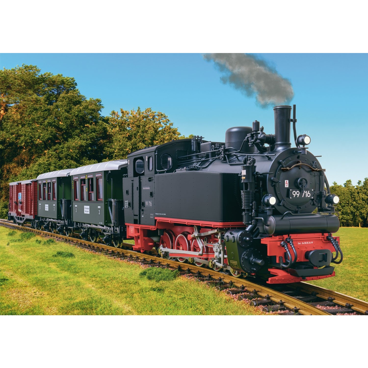 Fahrtrichtung wechselnd, Feuerbüchsbeleuchtung, Führerstandsbeleuchtung, Fahrgeräusch, Pfeife und vieles mehr. Eingebauter Rauchgenerator mit radsynchronem Dampfausstoss. Viele angesetzte Details, Führerhaustüren und Rauchkammertür zum Öffnen. Aus Transportgründen ist die Leiter beigelegt.