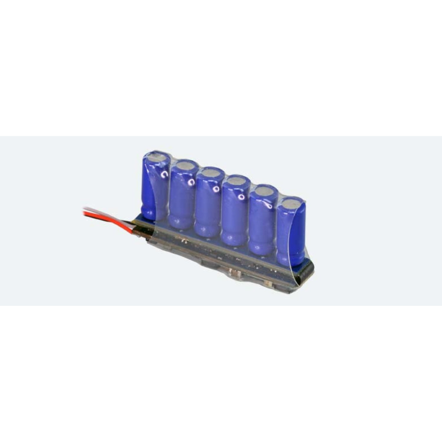 Mit Hilfe seines Energiespeichers (mit 6 x 0.3 Farad Kapazität) werden sowohl die Geräusch- als auch die Licht- und Motorfunktionen gepuffert und sorgen so dafür, dass Ihre Modelle je nach Stromverbrauch bis zu 1,5 Sekunden ohne Strom weiterfahren können. Dieses extrem flache Modul ist für kleinere Fahrzeuge mit moderatem Stromverbrauch gedacht.
