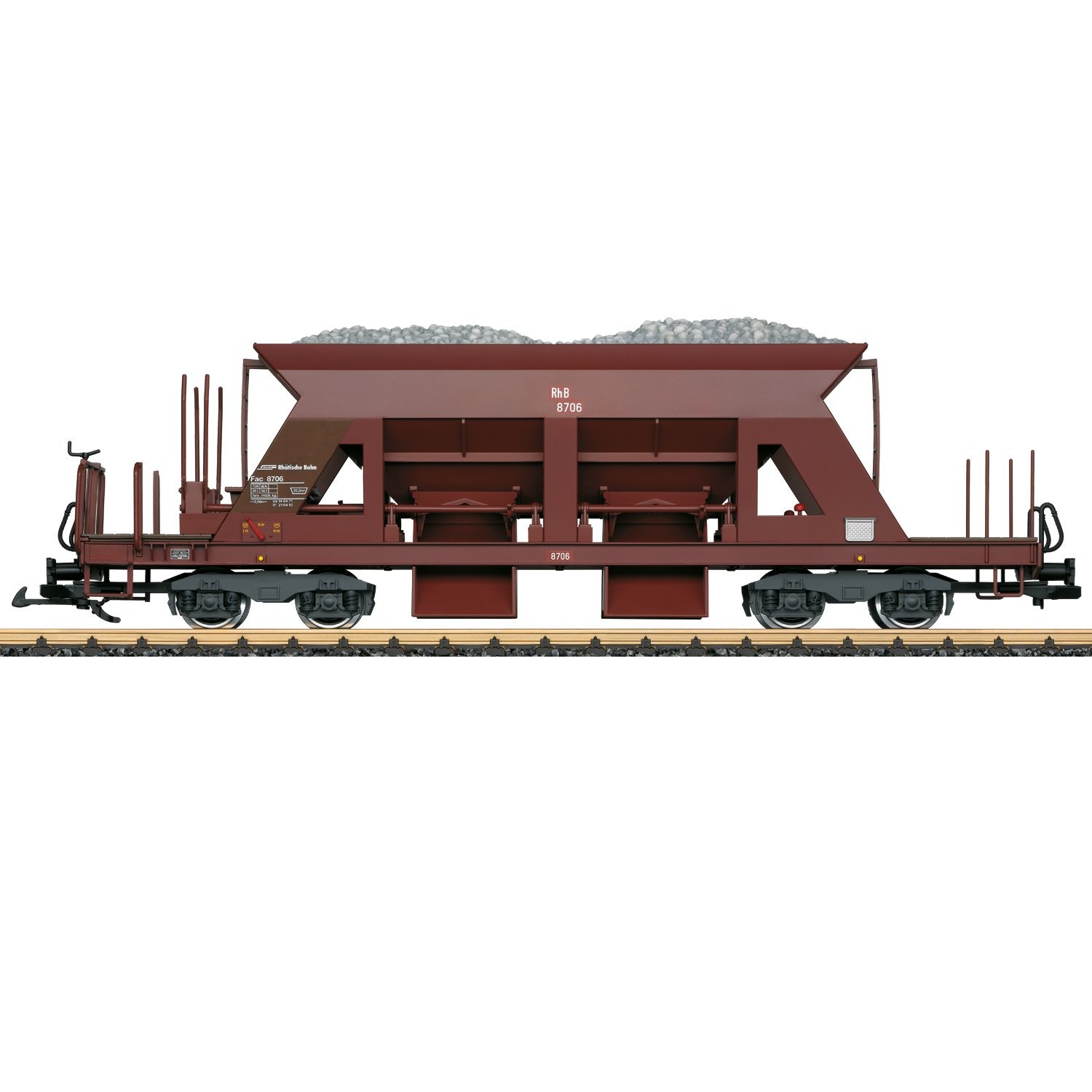 Hatte man in den Anfängen des Güterverkehrs bei der Eisenbahn nur offene und geschlossene Wagen, so entstanden recht bald spezielle Wagen für bestimmte Ladegüter. So werden auch heute noch offene Güterwagen mit Schwerkraftentladung - sogenannte Selbstentladewagen - verwendet, um Baumaterialien wie Kies oder Sand zu transportieren. Aber auch im Gleisbau werden solche Wagen eingesetzt, um den Schotter im Gleis zu verteilen. Zur Entladung werden einfach die an der Unterseite angeordneten Klappen geöffnet, und das Ladegut rutscht über die Schütten heraus. Auch bei der RhB sind solche Wagen in verschiedenen Versionen im Einsatz.