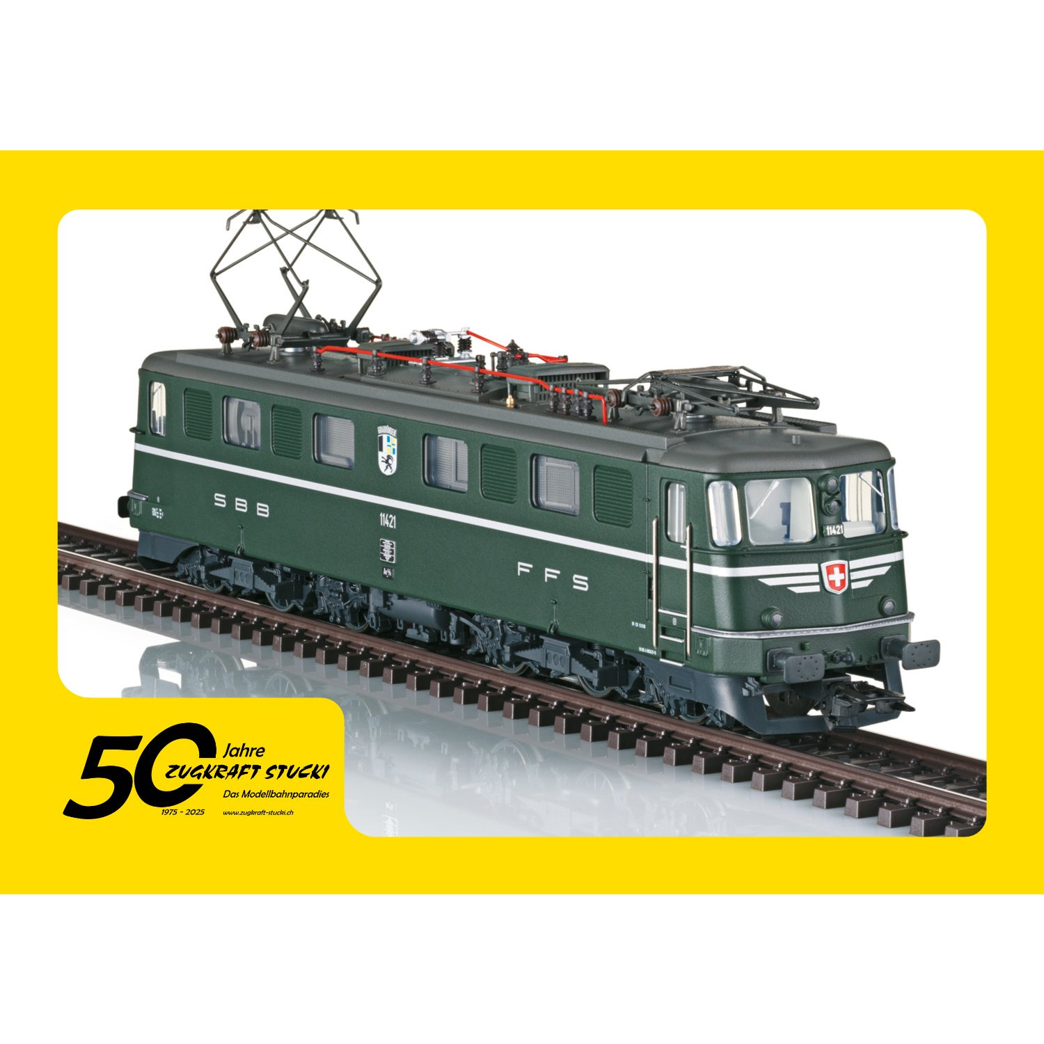 Vorbild: Elektrolokomotive Ae 6/6 als Museumslok der SBB Historic. Kantonswappen Graubünden/Grischun. Betriebsnummer 11421. Tannengrüne Grundfarbgebung. Betriebszustand 2022.