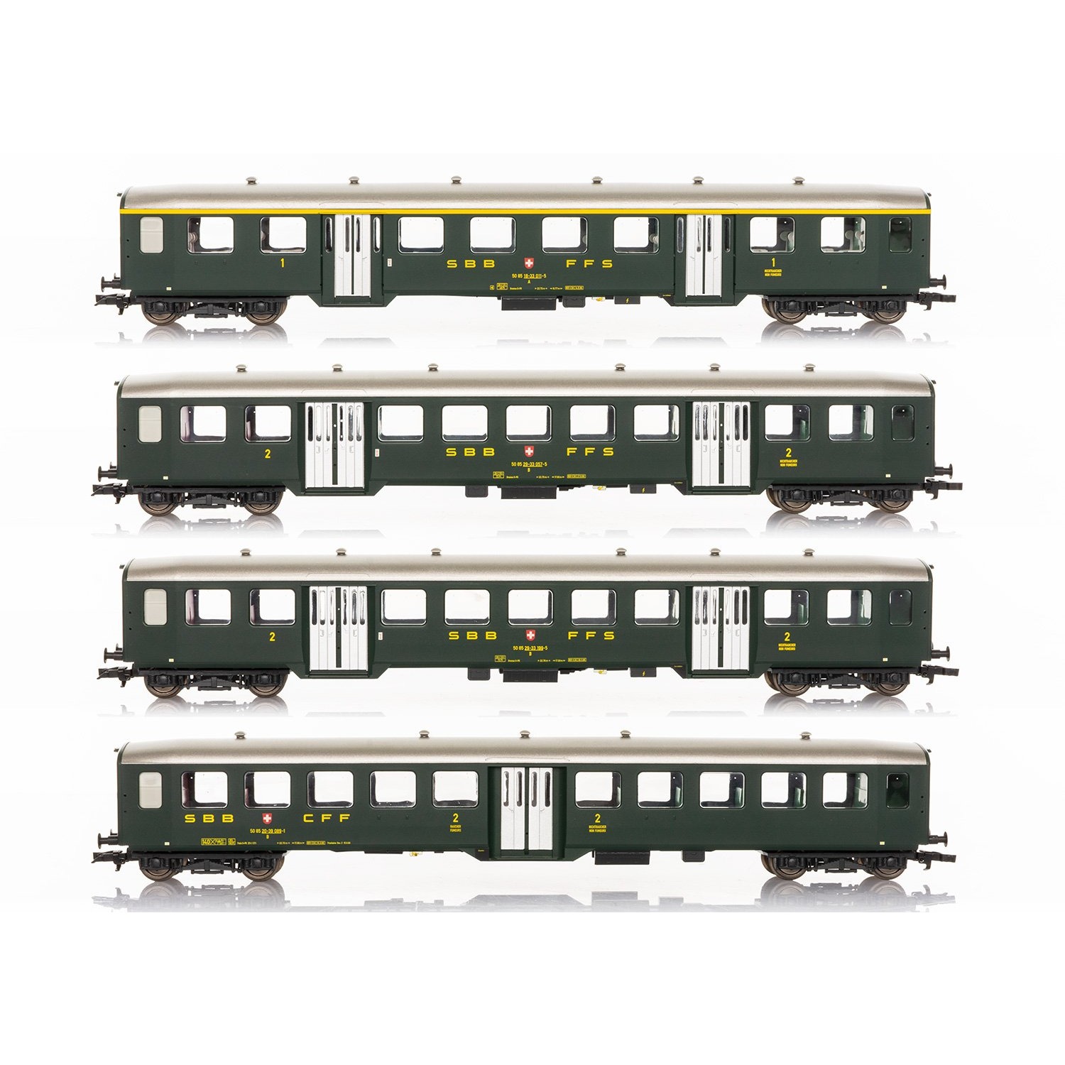 SBB Leichstahlwagen-Set 1, bestehend aus 1 × A und 3 unterschiedliichen B passende WS-Achsen Art. 939331