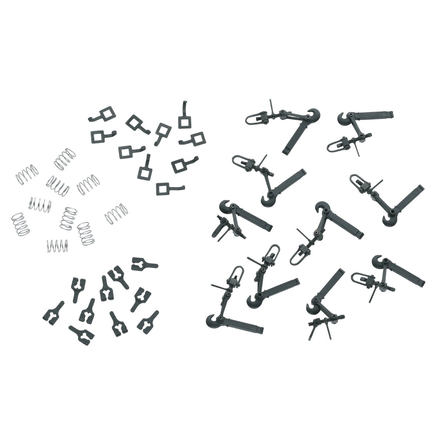 Detaillierte Miniaturisierung der Original-Schraubenkupplung. Länge durch Drehen des Innenteils mit Gewinde veränderbar. Durch Gelenke beweglich. Mit Befestigungsfeder. Inhalt 10 Stück. Die seit 1987 hergestellten Profi-1-Modelle besitzen mit wenigen Ausnahmen die Möglichkeit, die serienmäßige Klauenkupplung gegen diese Schraubenkupplung zu tauschen. Diese Kupplung entspricht optisch und in der Bedienung ihrem großen Vorbild. Ein Betrieb mit dieser Kupplung erfordert jedoch meist sehr große Mindestradien je nach Modell von 3,0 m bis zu 3,5 m. Aktuelle Profi-1-Modelle, die mit dieser Kupplung nachgerüstet werden können, erkennen Sie am entsprechenden Piktogramm.