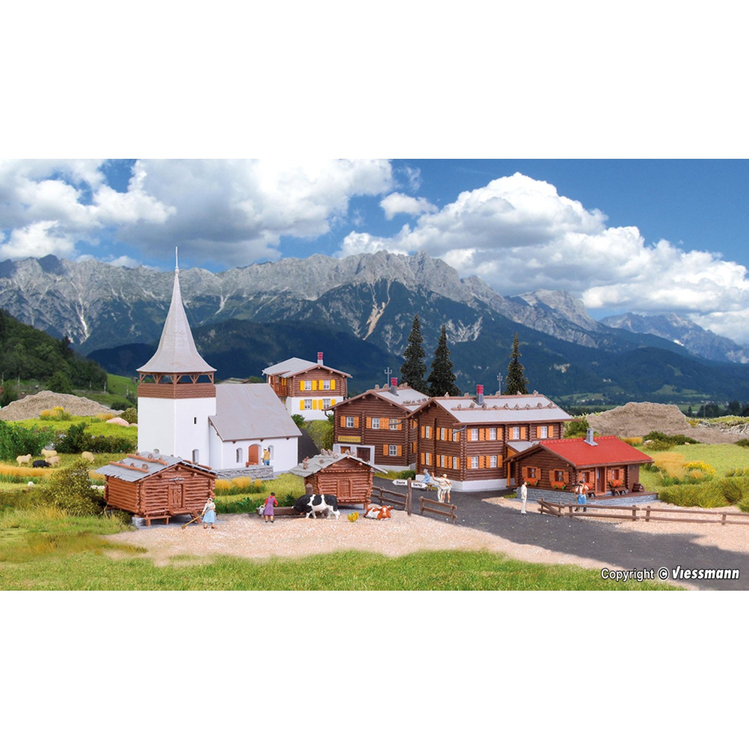 Sertig-Dörfli mit 7 Gebäuden und weiterem Dorf-Zubehör. - Bausatz