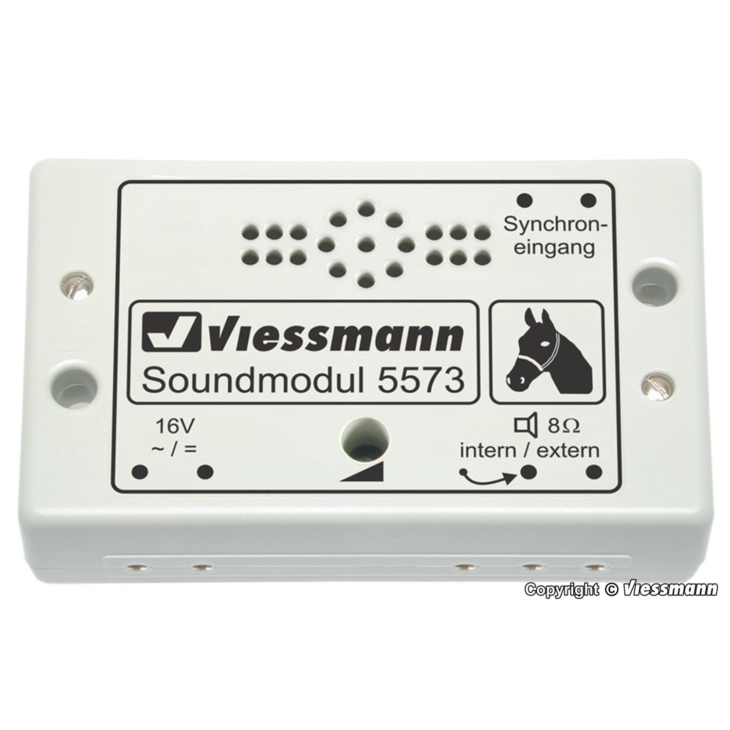 Modellbahn mit allen Sinnen erleben: Das stationäre Soundmodul ergänzt die Szenen der Bewegten Welten um die passenden Geräusche. Das Soundmodul verfügt über einen internen Lautsprecher und einen Anschluss für einen externen Lautsprecher. Es passt z. B. zum Pferd Art. 1519. Der Sound wird synchron auf die Bewegung der Figur abgestimmt.