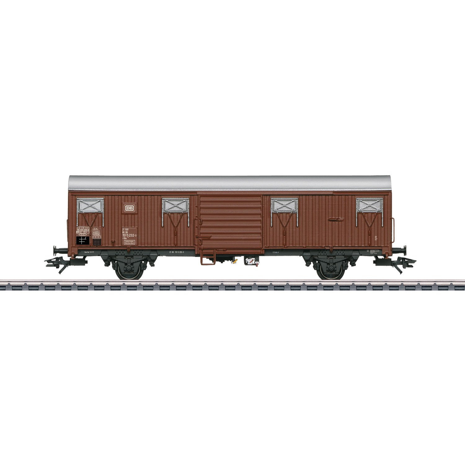Vorbild: Zweiachsiger gedeckter Güterwagen Bauart Gbs 256, mit Stahlblechwänden in Spundwandform der Deutschen Bundesbahn (DB). Ausführung ohne Sprengwerk. Betriebszustand um 1978.