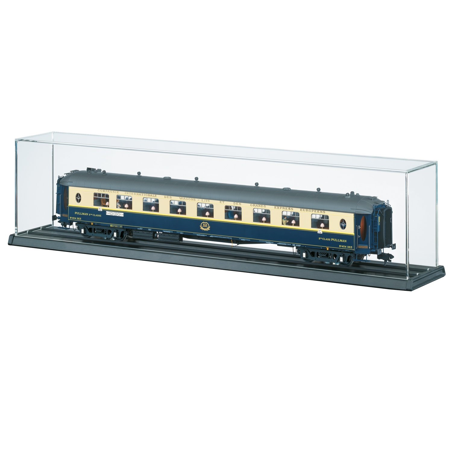 Modell: CIWL-Salonwagen ohne Küche. Präsentations-Handarbeitsmodell mit Plexiglas-Schutzhaube/Aluminium Präsentationssockel und eingebauten Metall-Figuren. Der Wagen kann zur Präsentation als auch im Fahrbetrieb verwendet werden. Fahrzeug weitestgehend in Metall umgesetzt. Wagenaufbau und Dach aus Messingblech mit angesetzten Messing-Schleudergussteilen und nur wenigen Teilen aus Kunststoff. Wagenboden aus Aluminium. Metallfiguren in neuer Farbgestaltung ab Werk eingebaut.