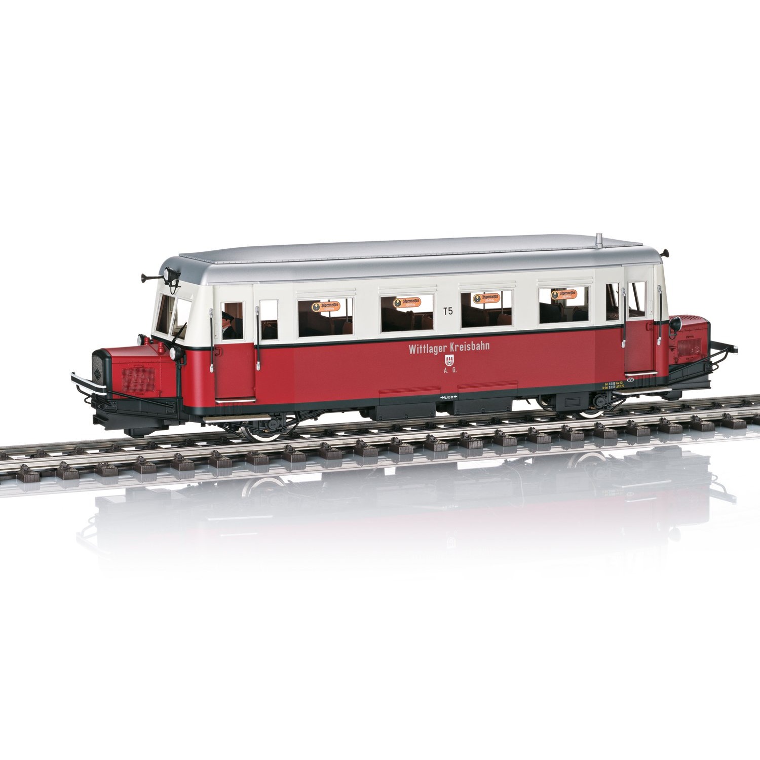 Dieseltriebwagen Cvt-34 „Wismarer Schienenbus“ (Typ "Hannover A") T5, der sogenannte "Igel" der Wittlager Kreisbahn (WKB). Rubinrot/Reinweiss, Epoche III/IV (Zustand Ende der 1960er Jahre).