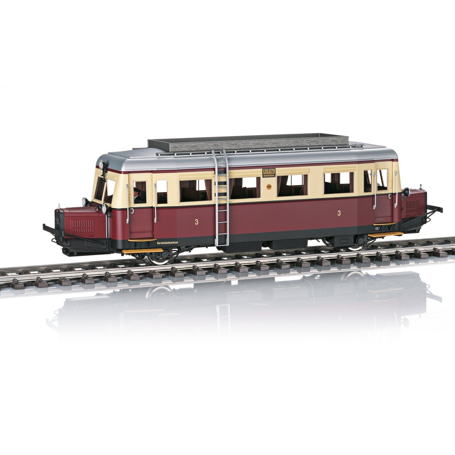 Dieseltriebwagen Cvt-34 „Wismarer Schienenbus“ (Typ "Hannover A"), der DRG. Farbe Weinrot/Elfenbein, Epoche II (Zustand ab Ende 1935 bis 1947) Betriebsnummer VT 135 079, Saarbrücken.