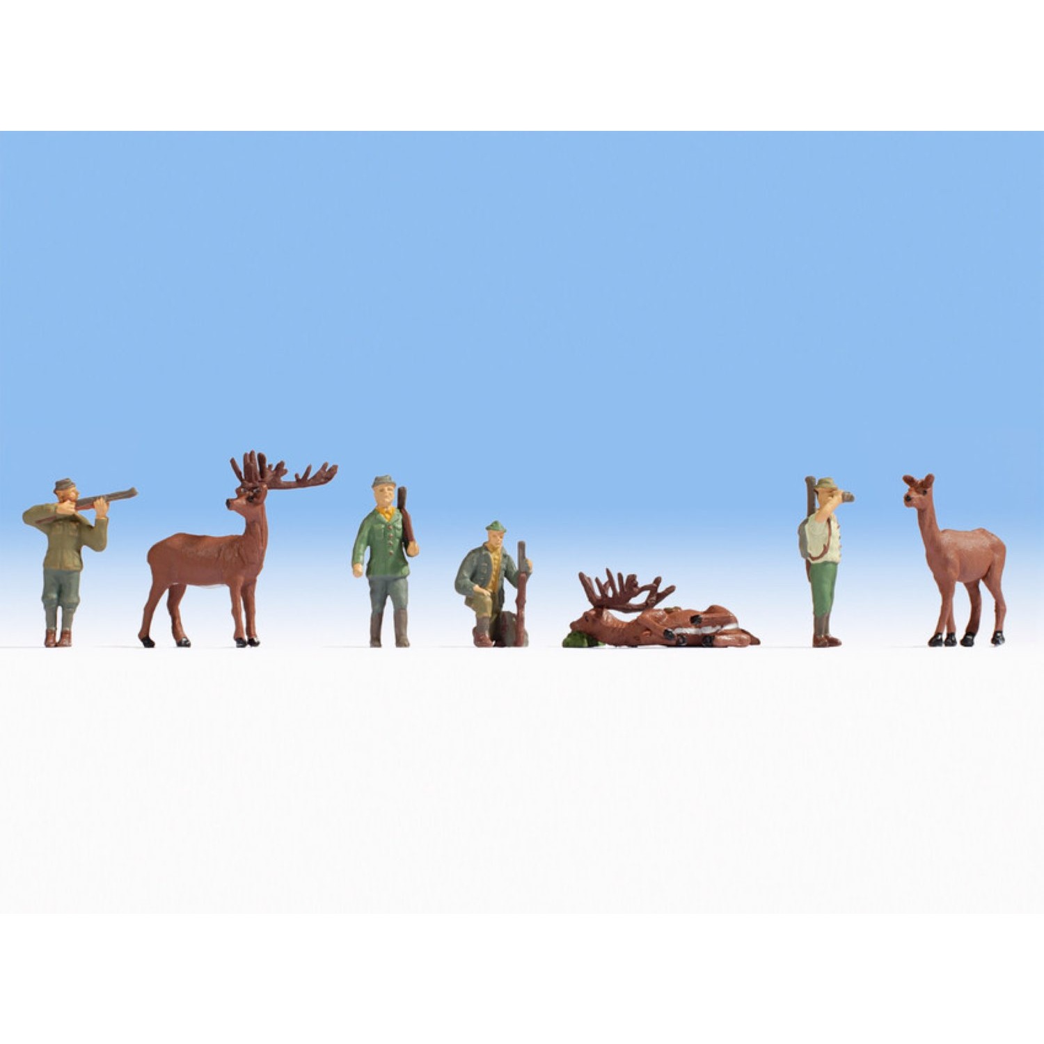 Inhalt: 4 Jäger und 3 Stück Rotwild.